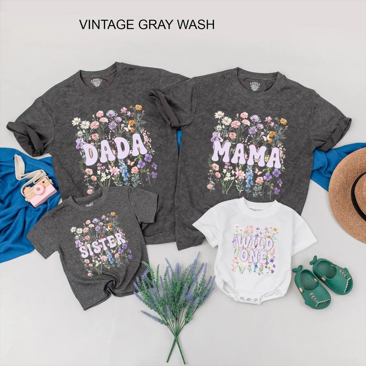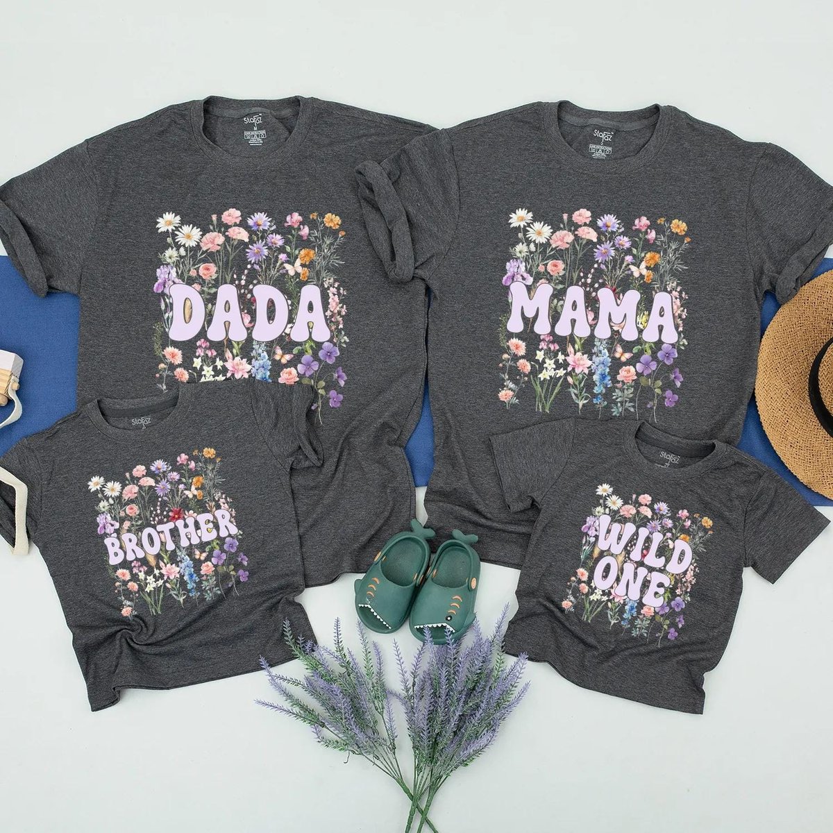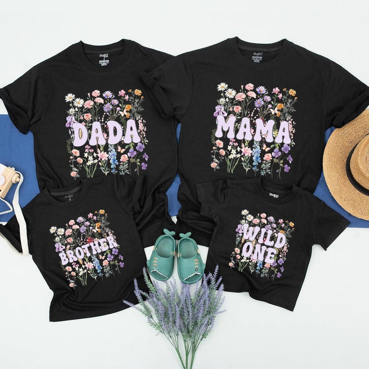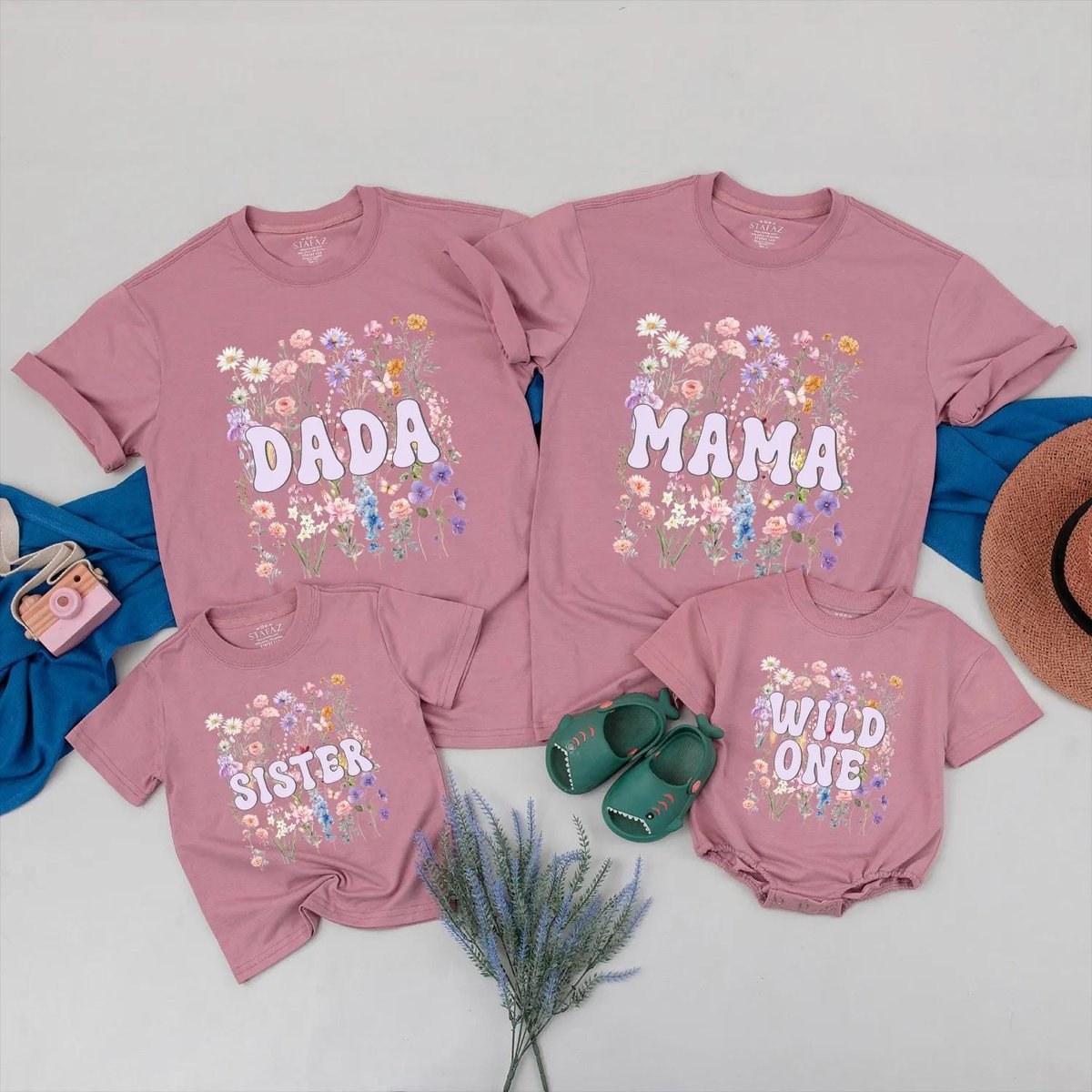 Boho Wild One Wildflower 1st Birthday Girl Shirts for Family Wildflower Theme Matching T shirt Daddy 188