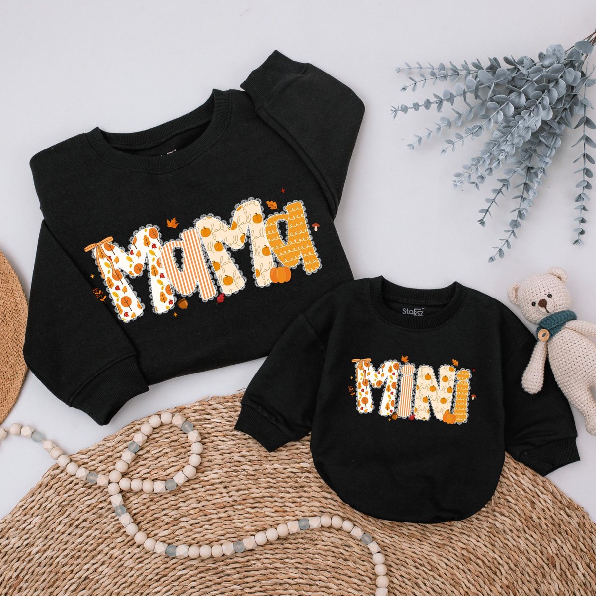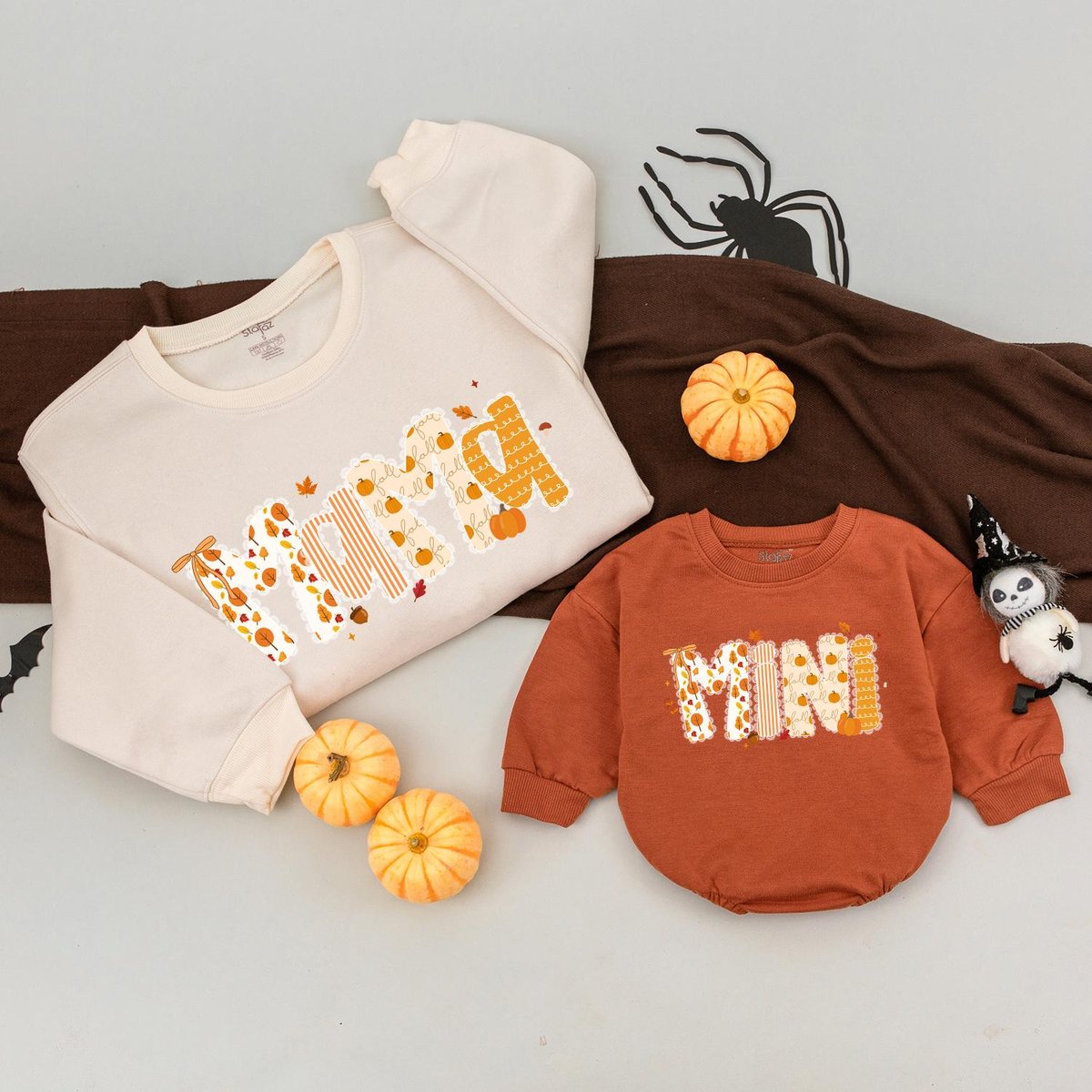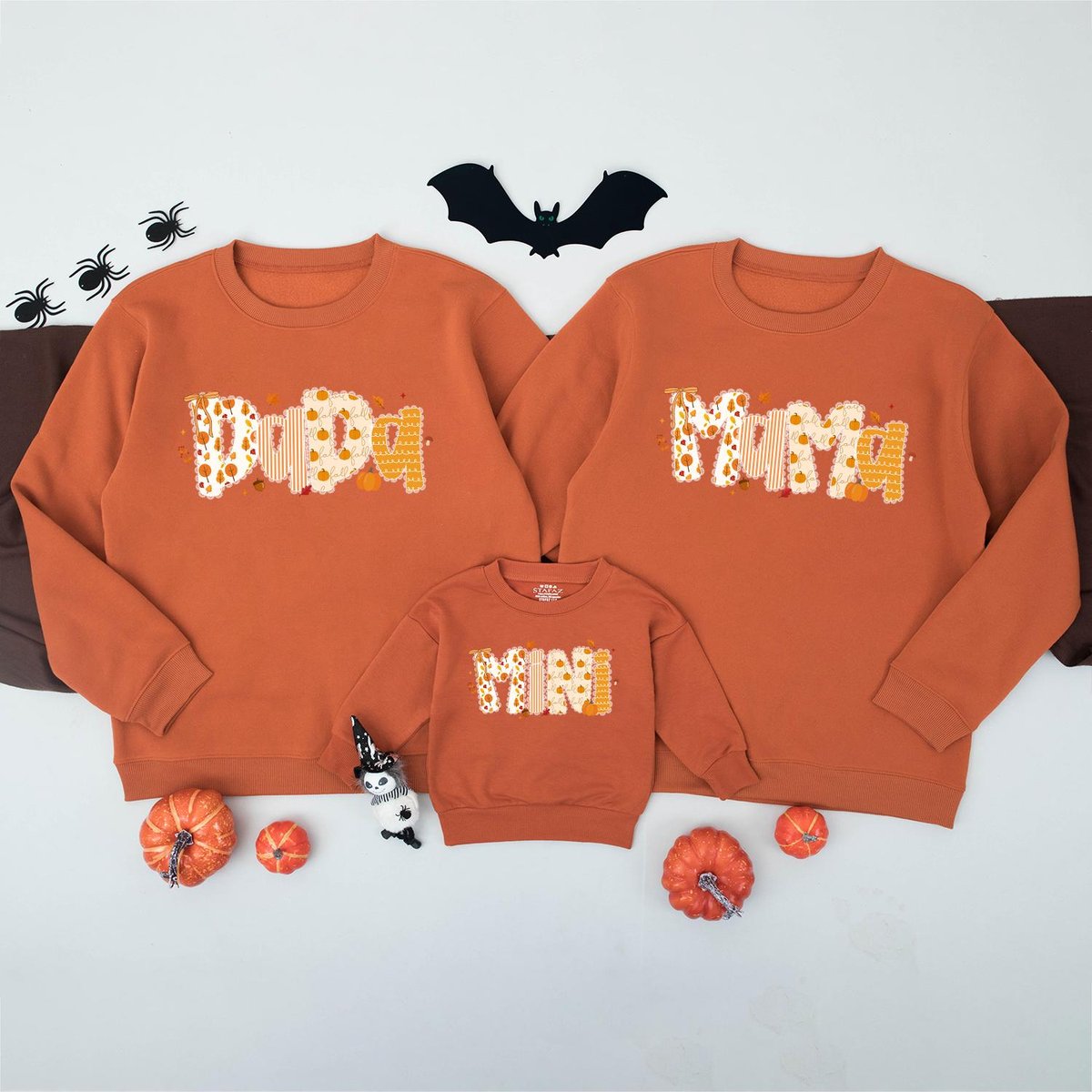 Custom Fall Family Sweatshirt Family Pumpkin Outfit Thanksgiving Matching Shirt Retro Fall Mommy and 435