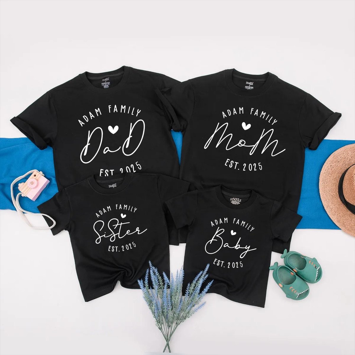Custom Family Matching Shirts Personalized Established 2025 Outfit Set Baby Announcement Family Clot 431