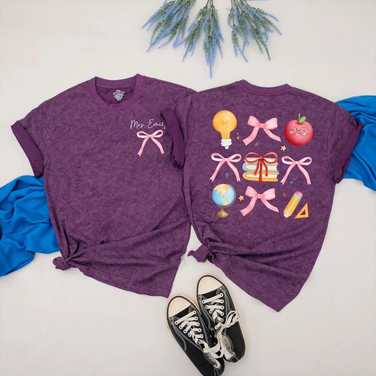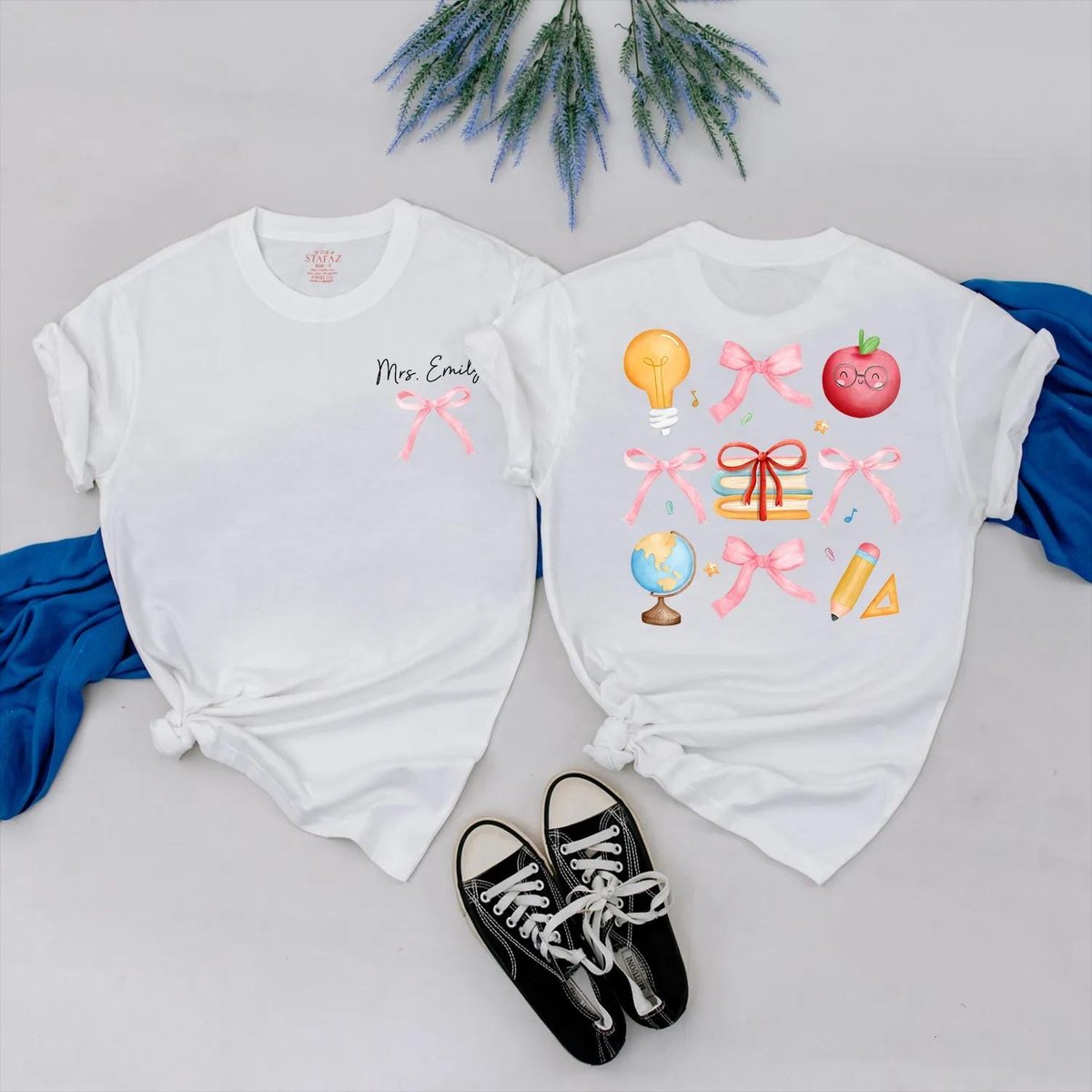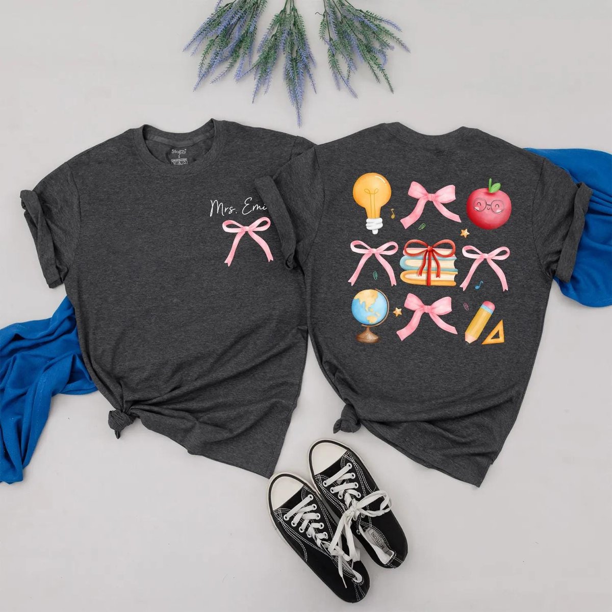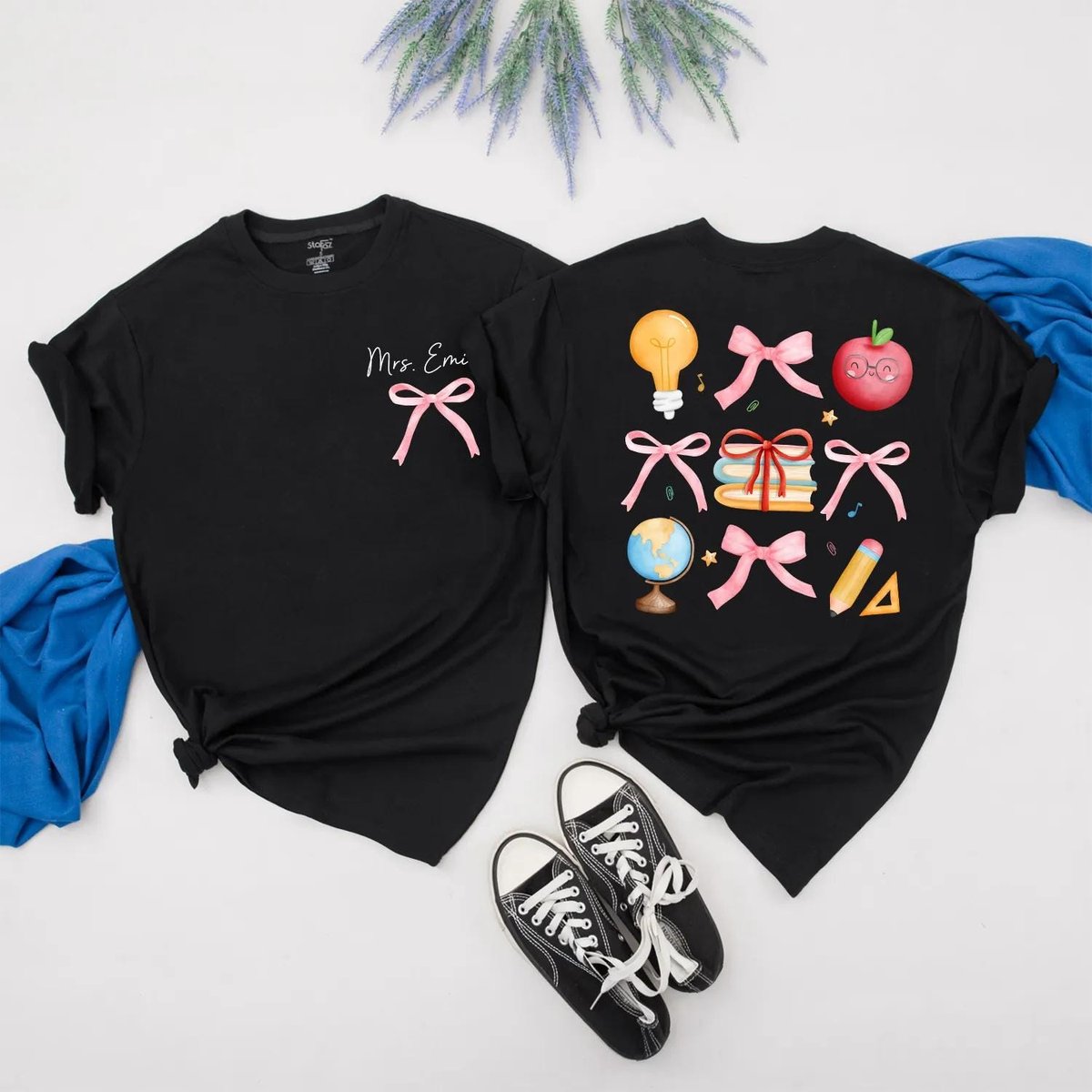 Custom Teacher T Shirt with Pink Bows Personalized Back to School Shirt for Women Preppy Teacher App 430
