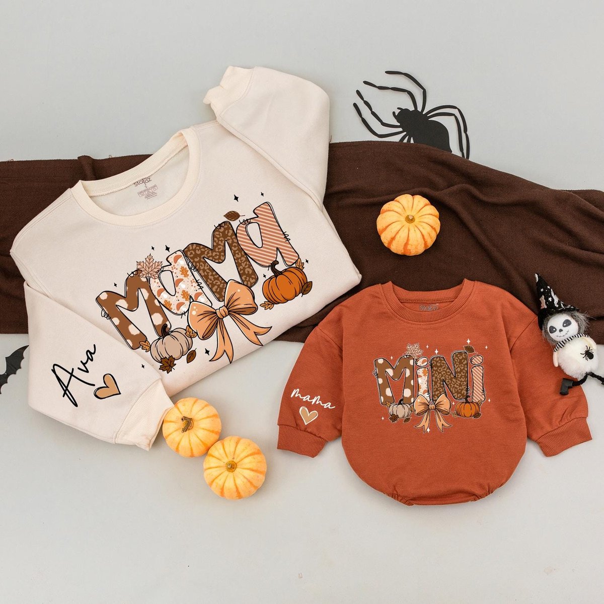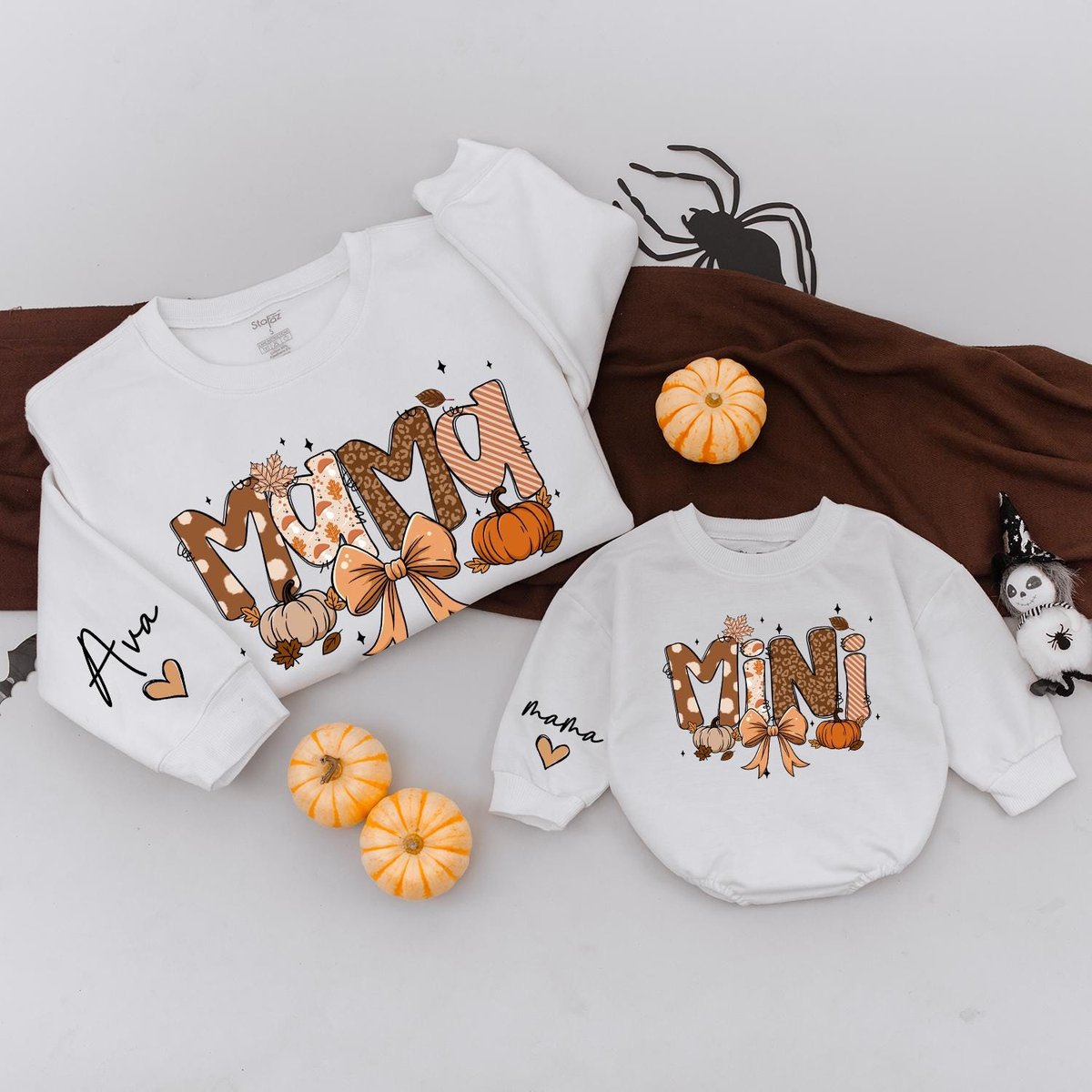 Fall Mama Mini Sweatshirts Autumn Mommy and Me Sweater Mama Pumpkin Bow Fall Family Matching Outfit 435