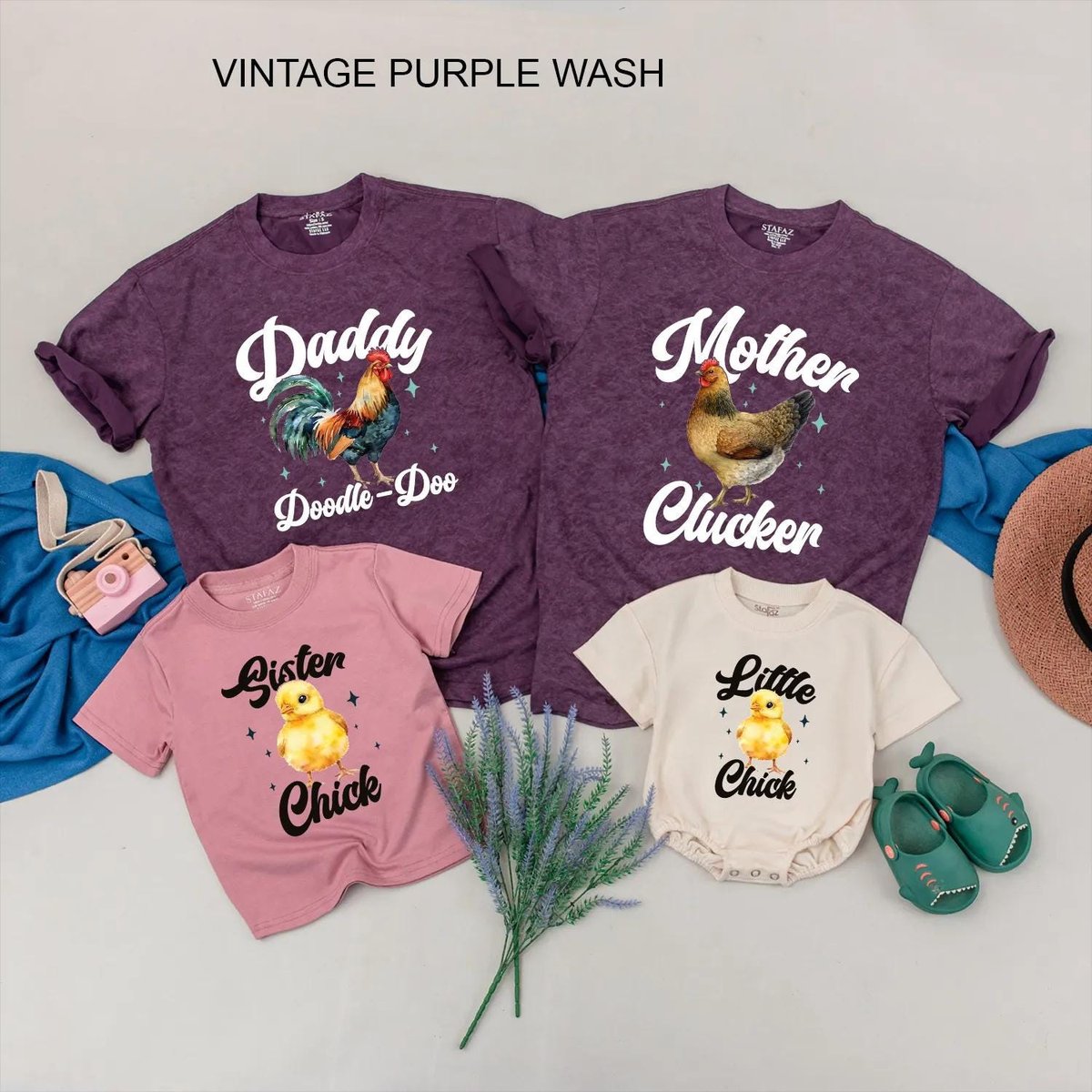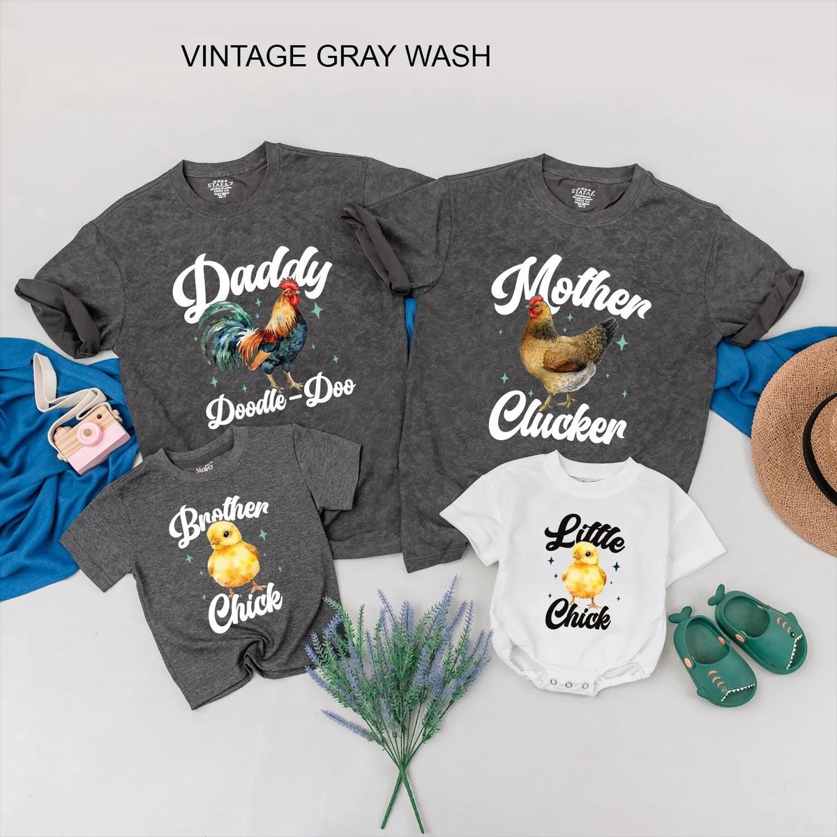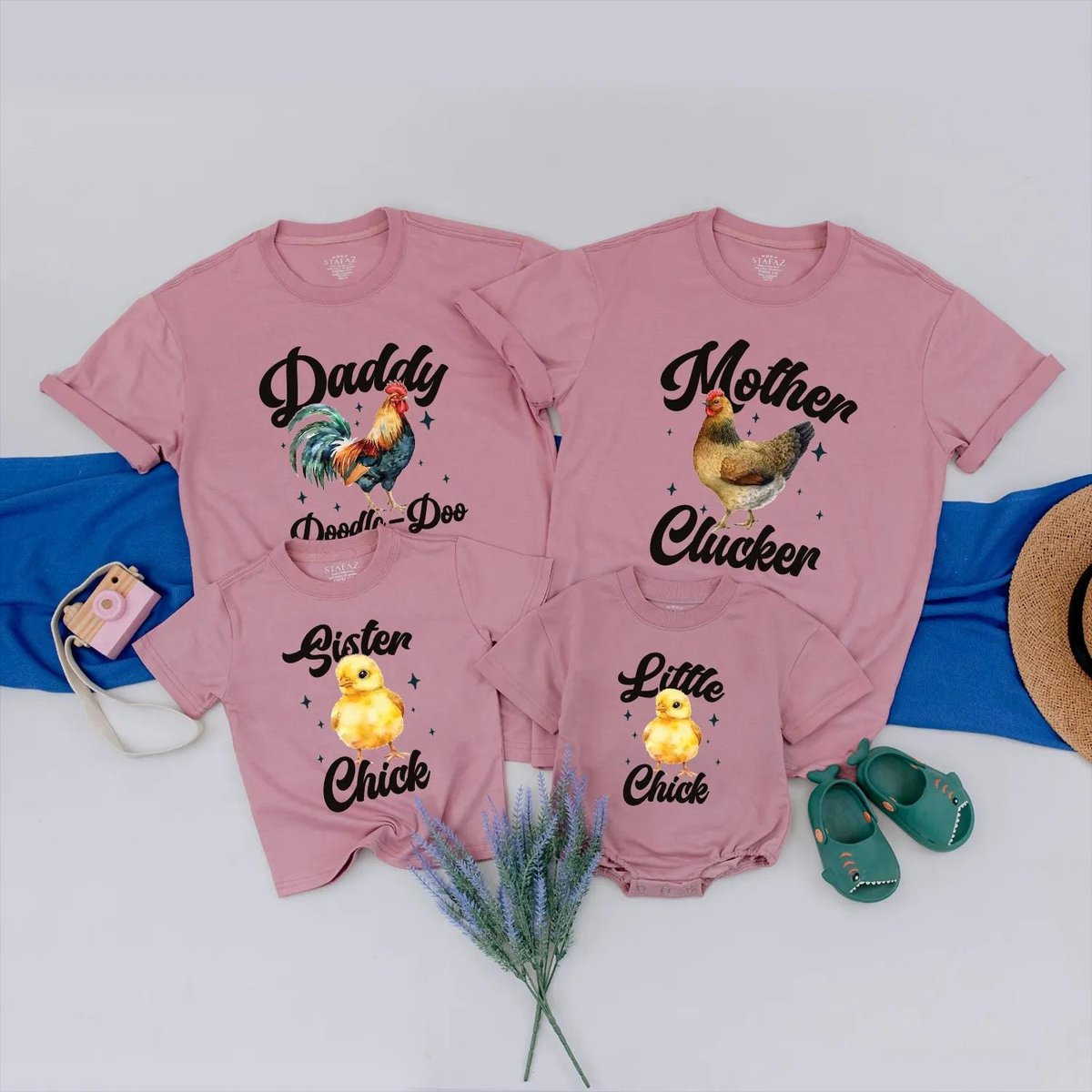 Family Chicken Shirts Matching Barnyard Farm Birthday Tees Little Chick Baby Bodysuit Mother Clucker 431