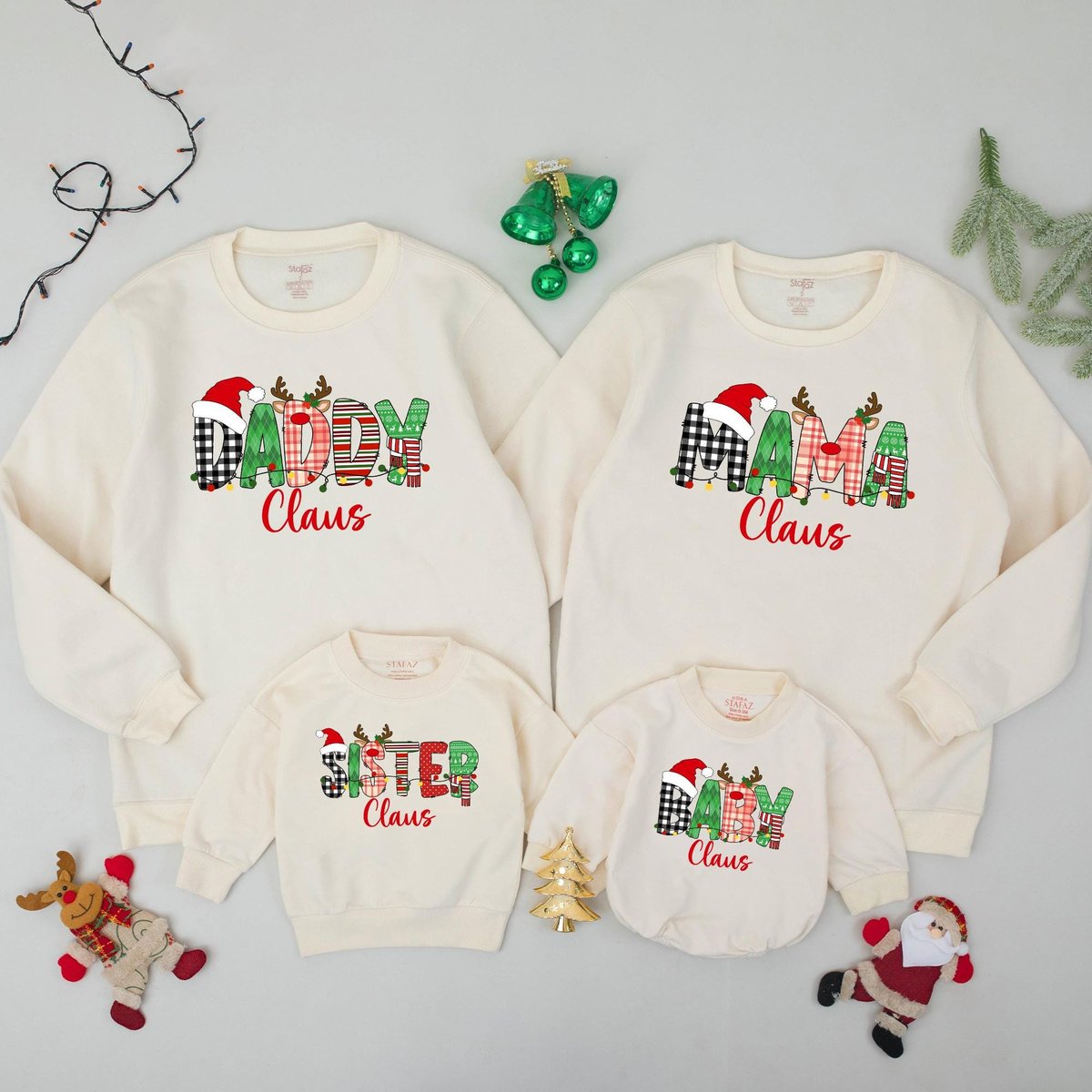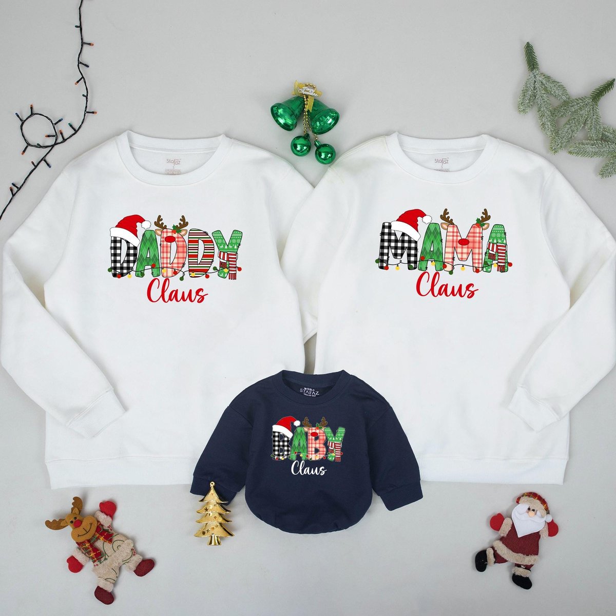 Family Claus Matching Christmas Sweatshirts Personalized Holiday Outfits Babys First Christmas Rompe 436