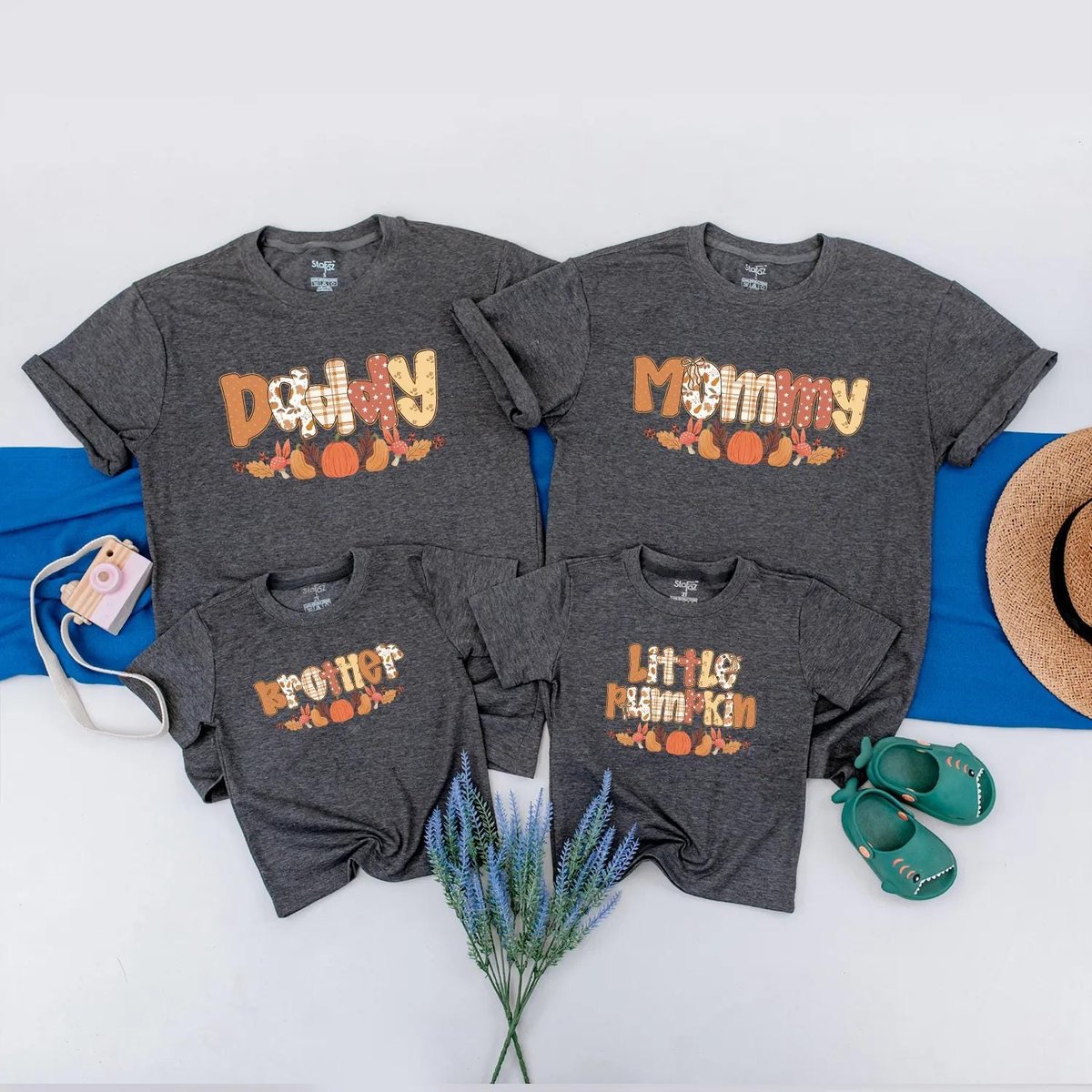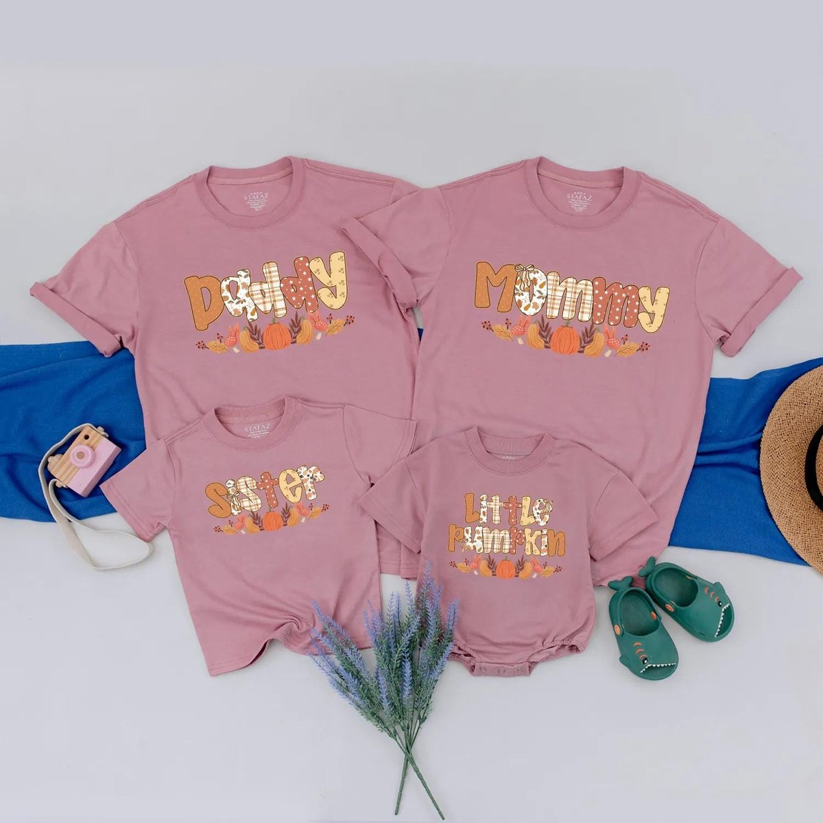 Family Pumpkin Matching Shirts Little Pumpkin Romper Cute Thanksgiving Clothes Pumpki Bow Tee Fall S 433