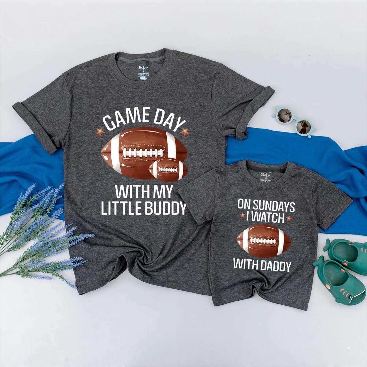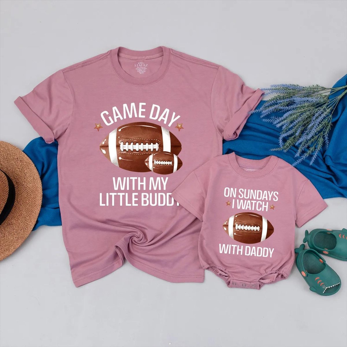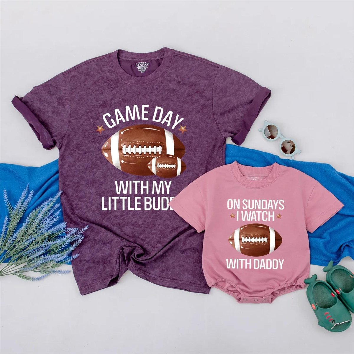 Fathers Day Matching Outfits Daddy and Baby Game Day Shirts for Sunday Football Perfect Gift for New 188