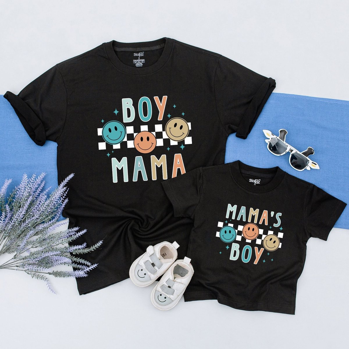 Happy Face Mom And Boy Shirt Boy Mama Shirt Mamas Boy Toddler Tee Mommy And Son Matching Set New Mom 170