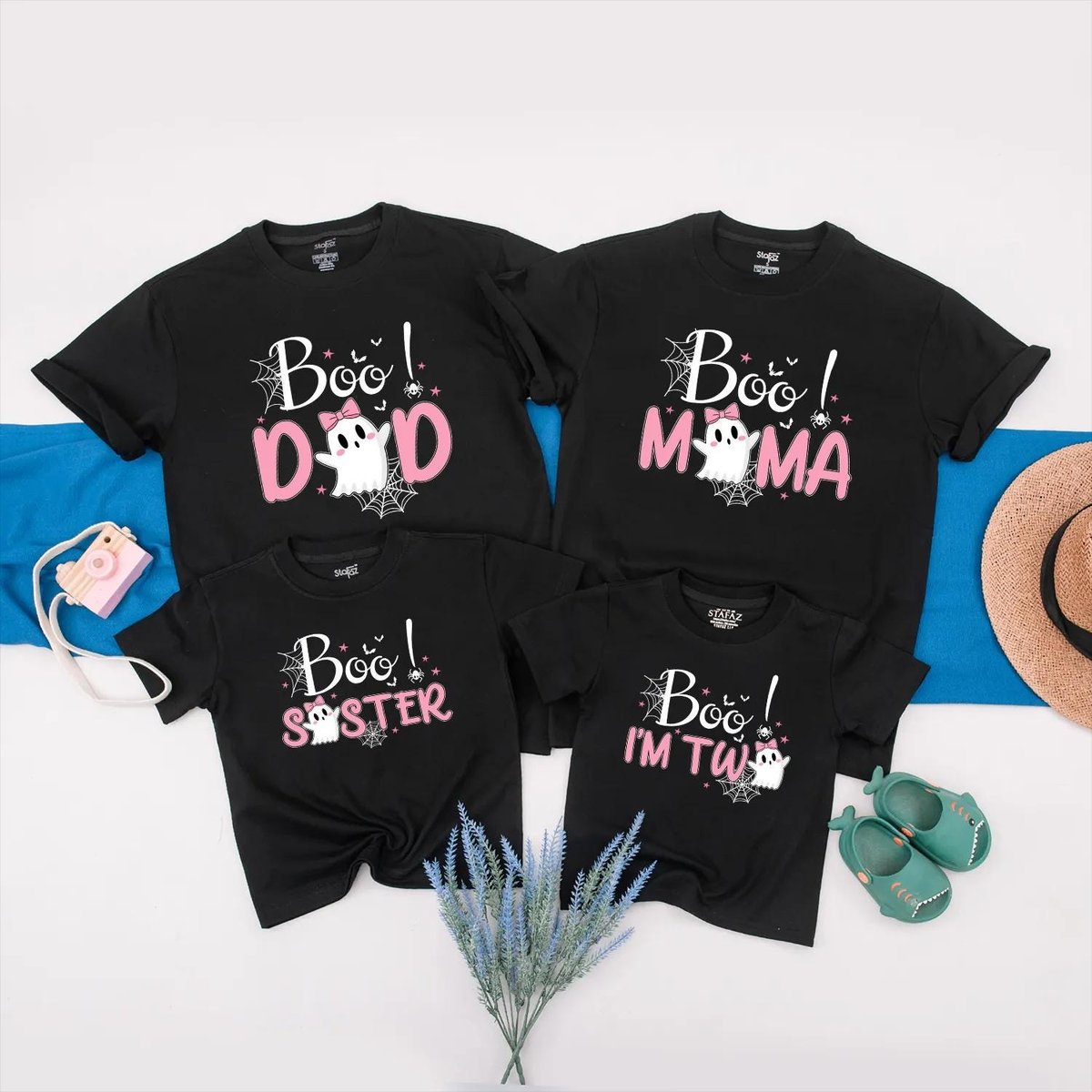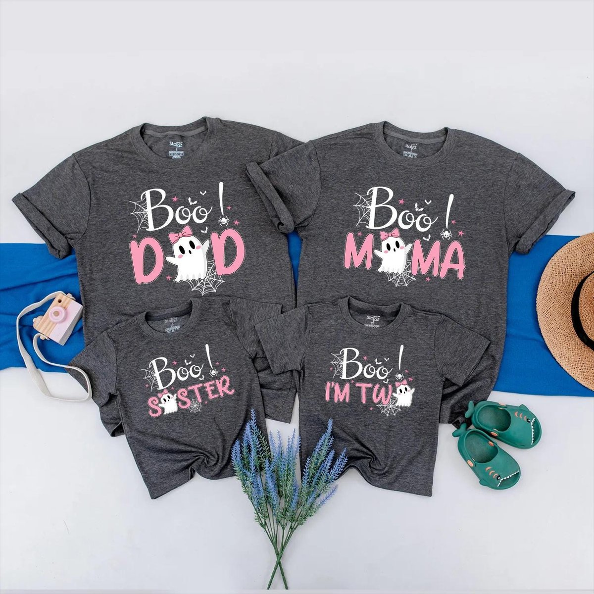 Little Boo is One or Two Birthday Shirts Halloween Matching Family Outfits Cute Ghost Party Tee for 432