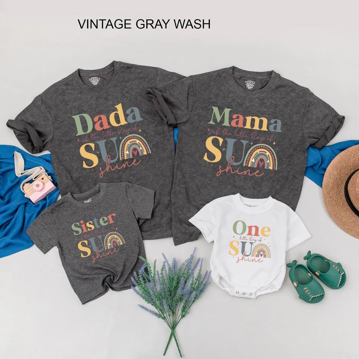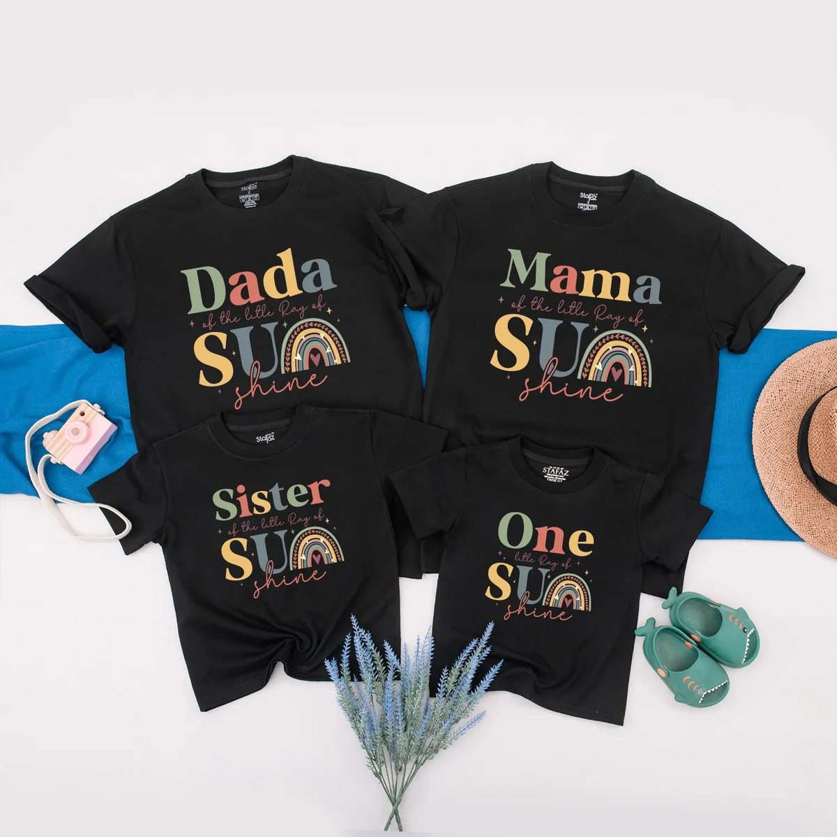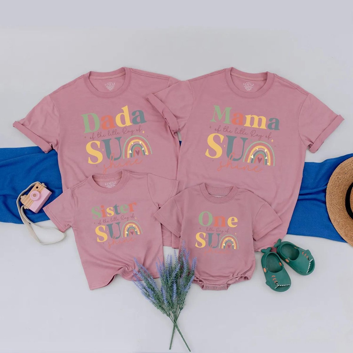 Little Ray of Sunshine Family Matching 1st Birthday Shirts Boho Sun and Rainbow First Birthday Outfi 432