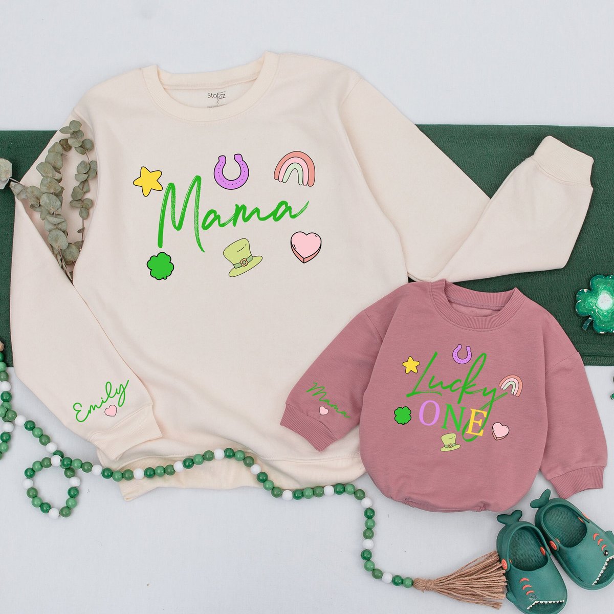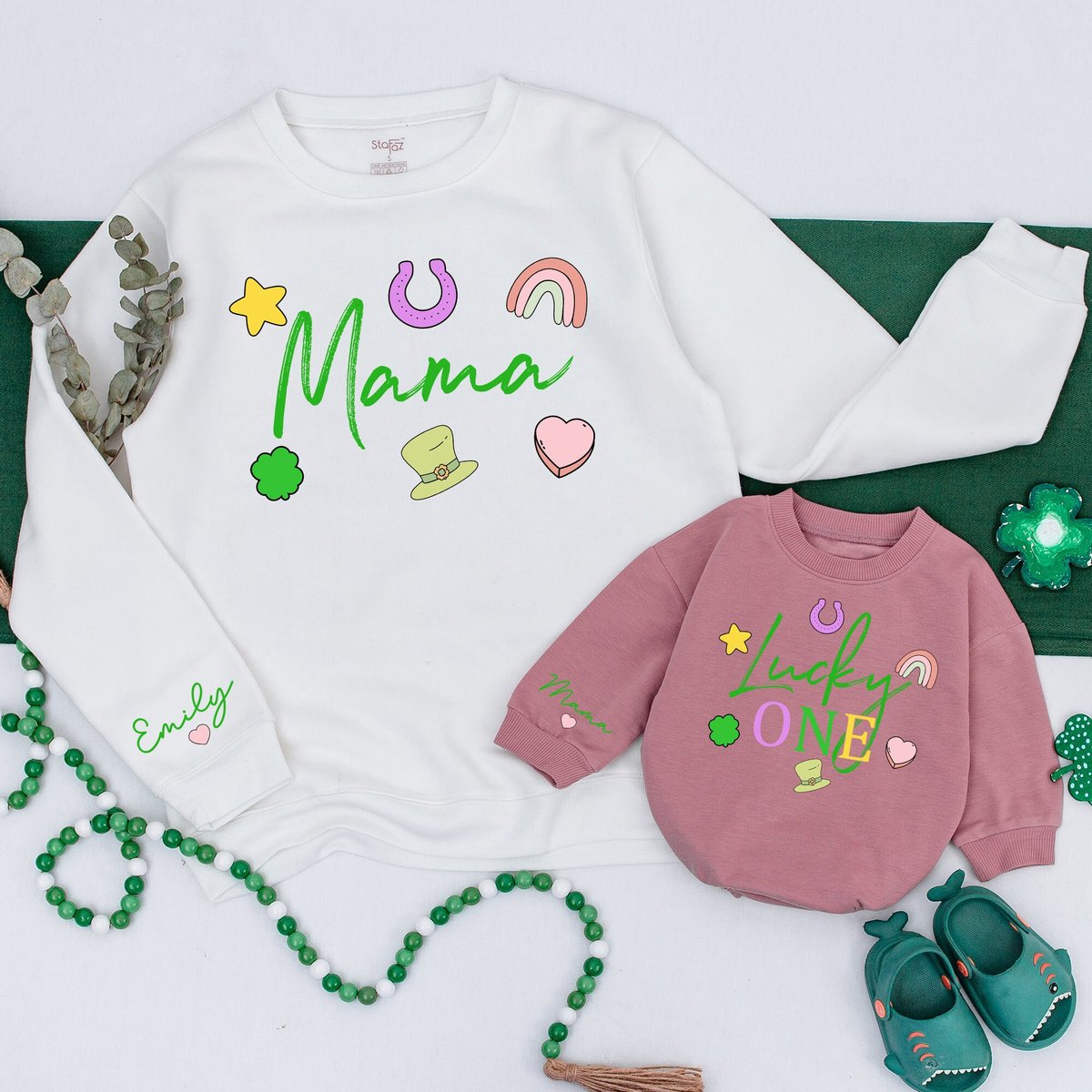 Mama And Lucky One Birthday Sweatshirt 1st Birthday Outfit Patricks Day Birthday Shirt Matching Momm 166