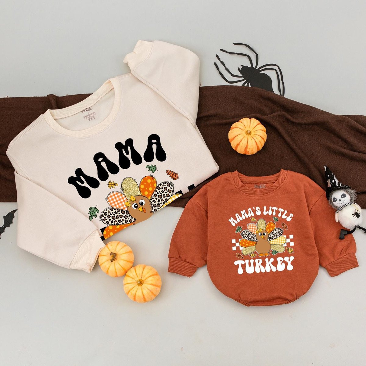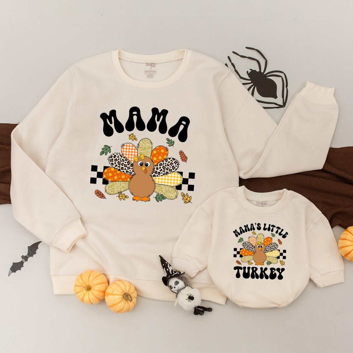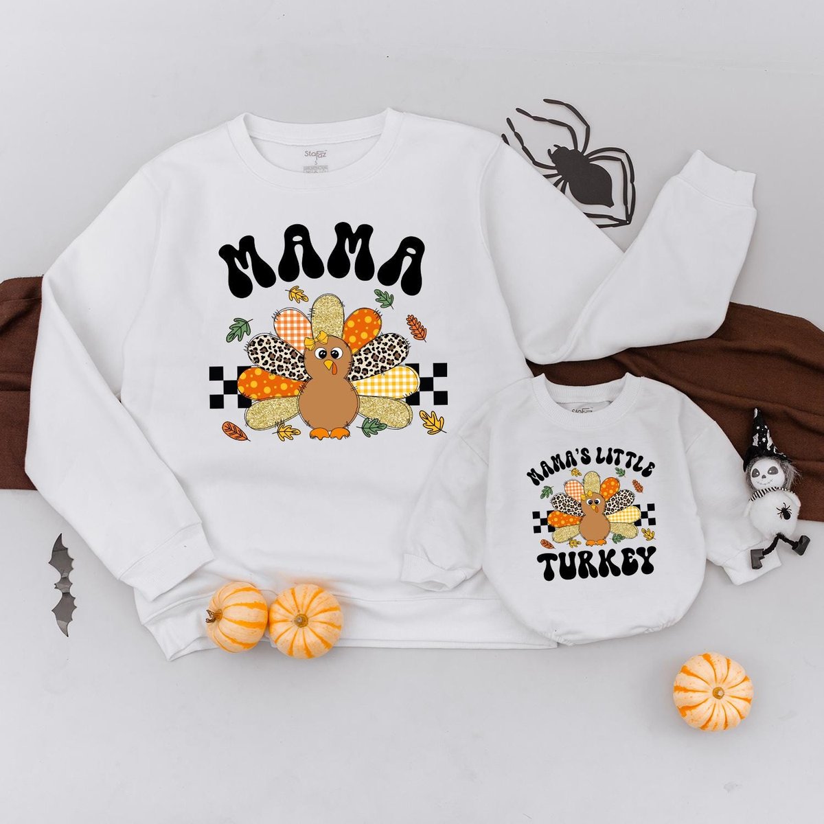 Mama and Mama’s Turkey Matching Sweatshirt Thanksgiving Mommy and Baby Fall Family Outfit Little Tu 435