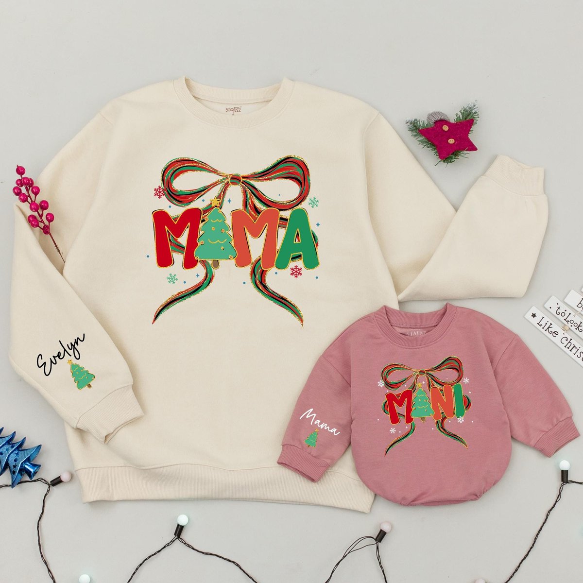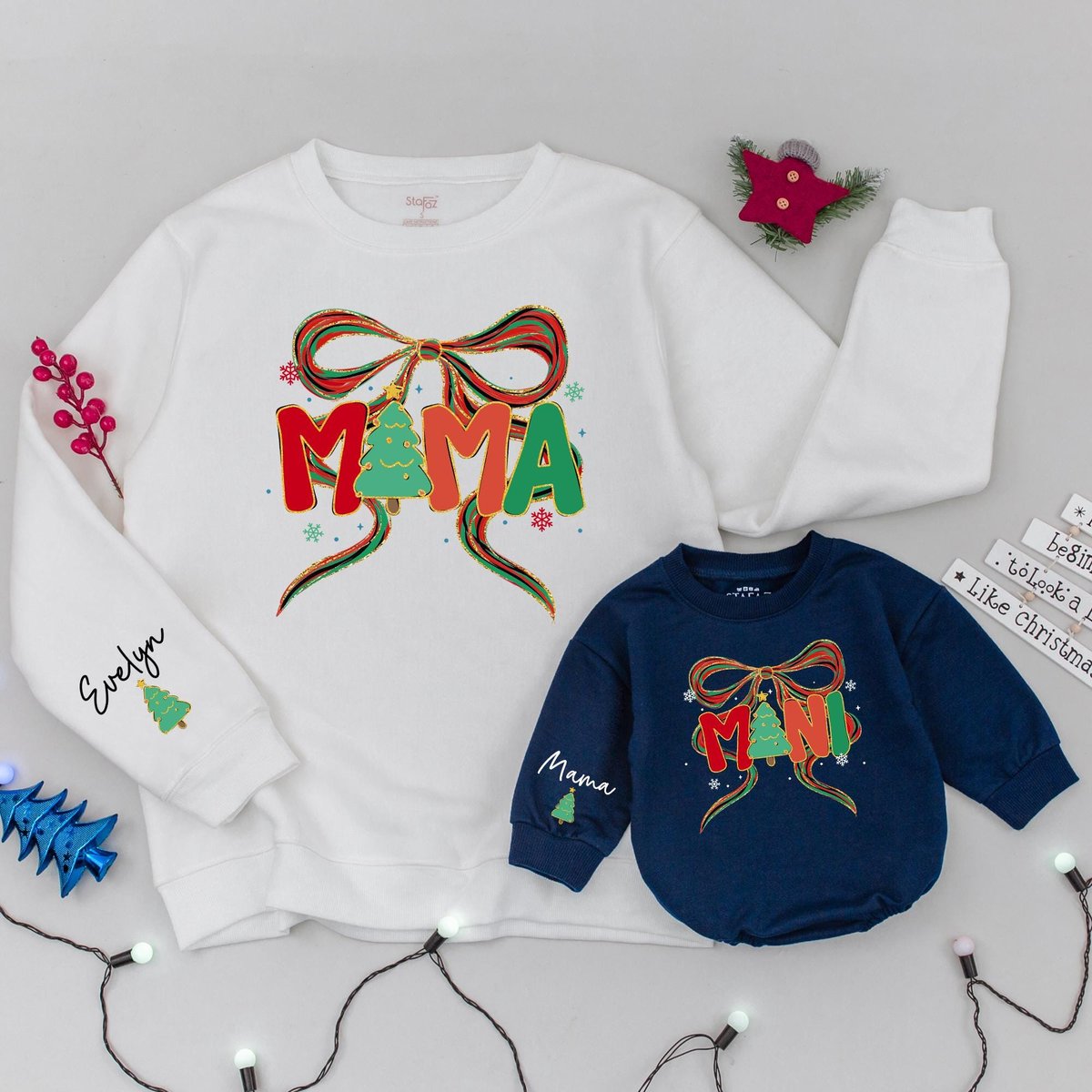 Mama and Mini Bow Christmas Sweatshirt Mommy and Baby Holiday Sweater Custom Family Christmas Outfit 436