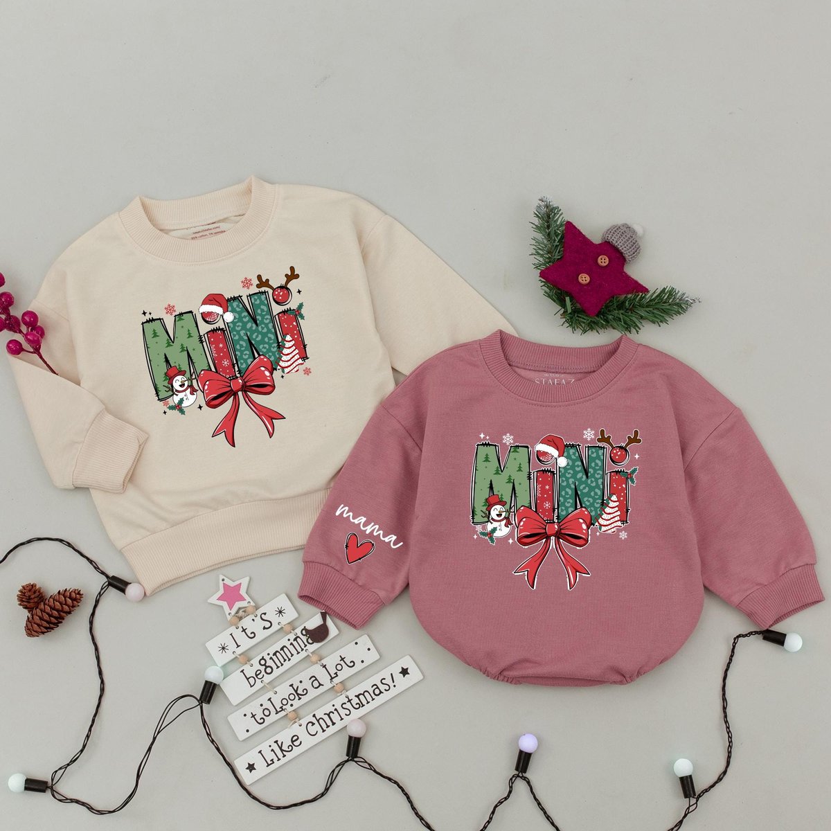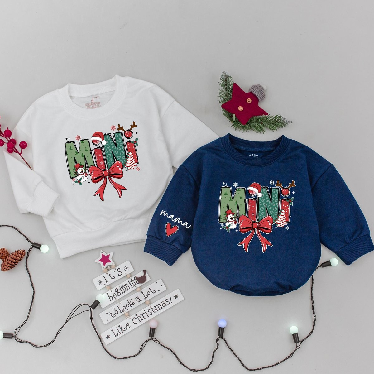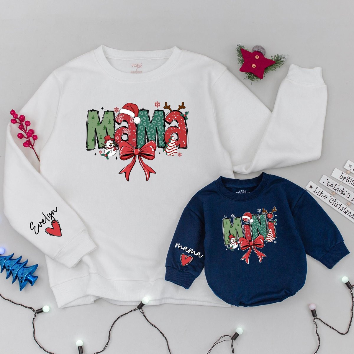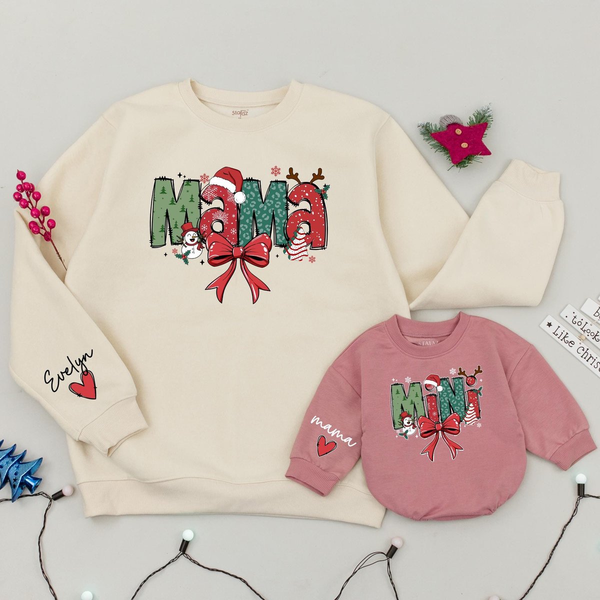 Mama and Mini Claus Xmas Sweatshirt Custom Family Christmas Sweater Matching Holiday Outfit Mommy an 436