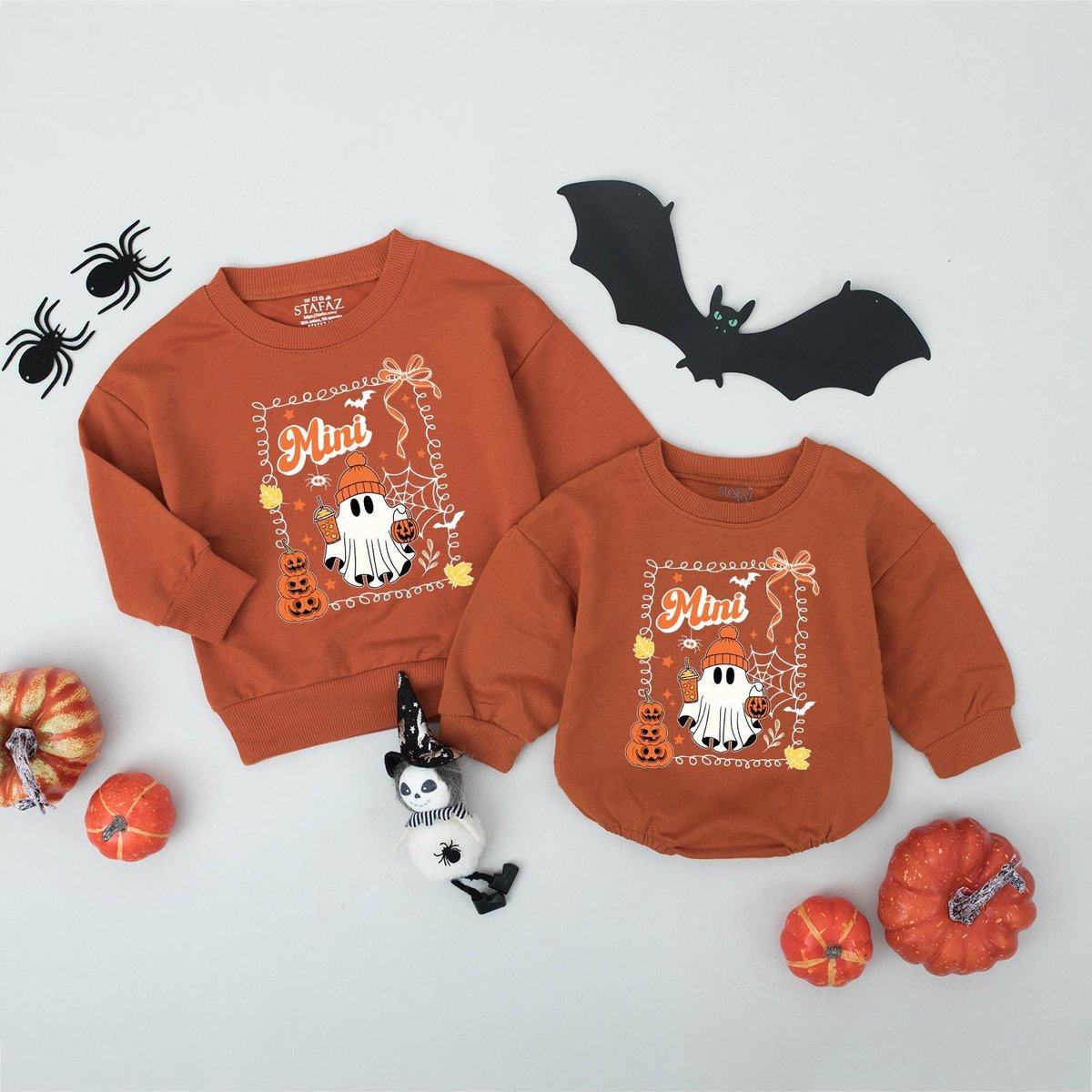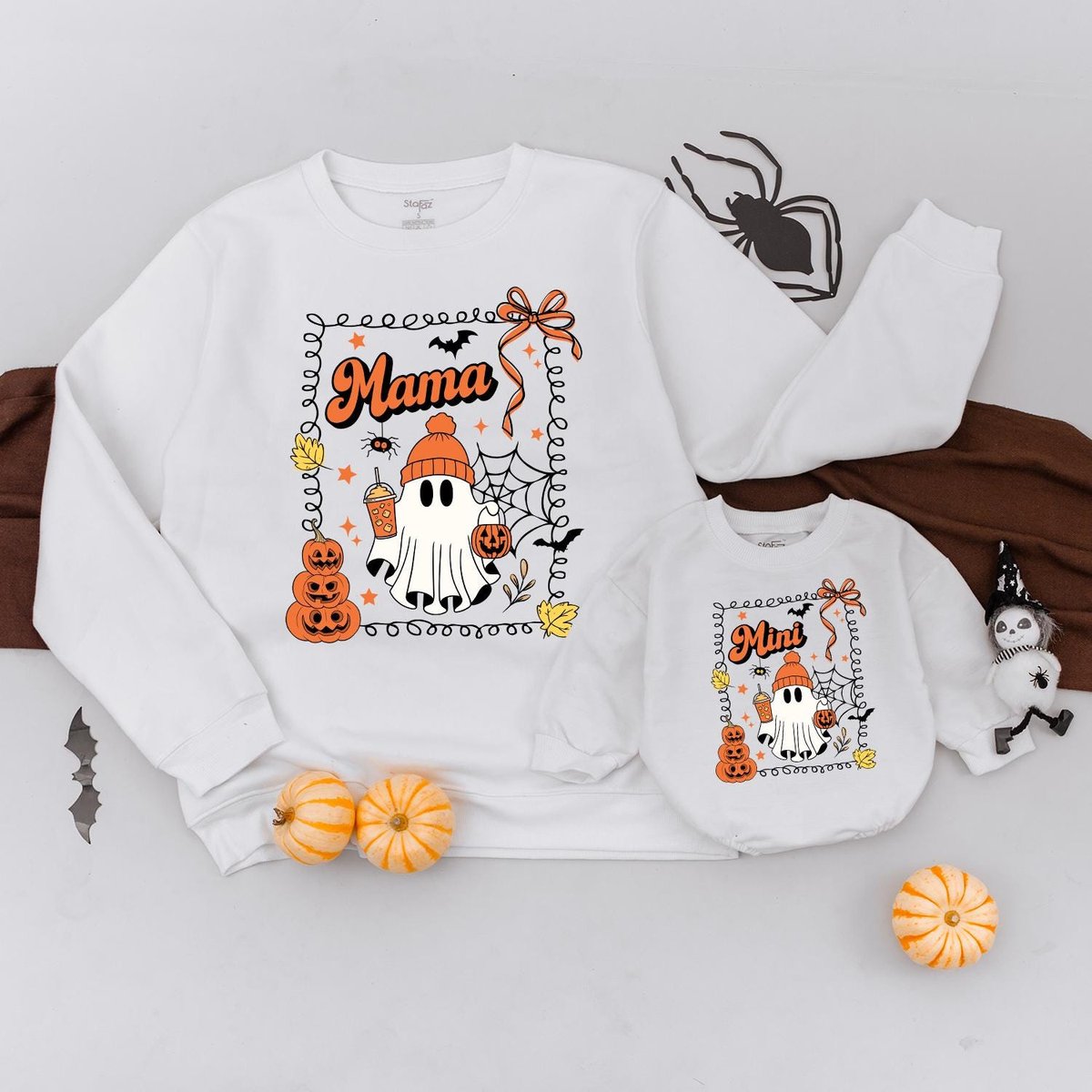 Mama and Mini Halloween Matching Sweatshirts Fall Mommy and Me Sweaters Retro Halloween Boo Hallowee 436