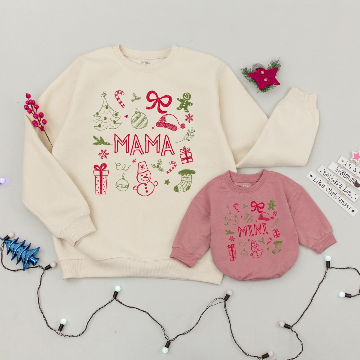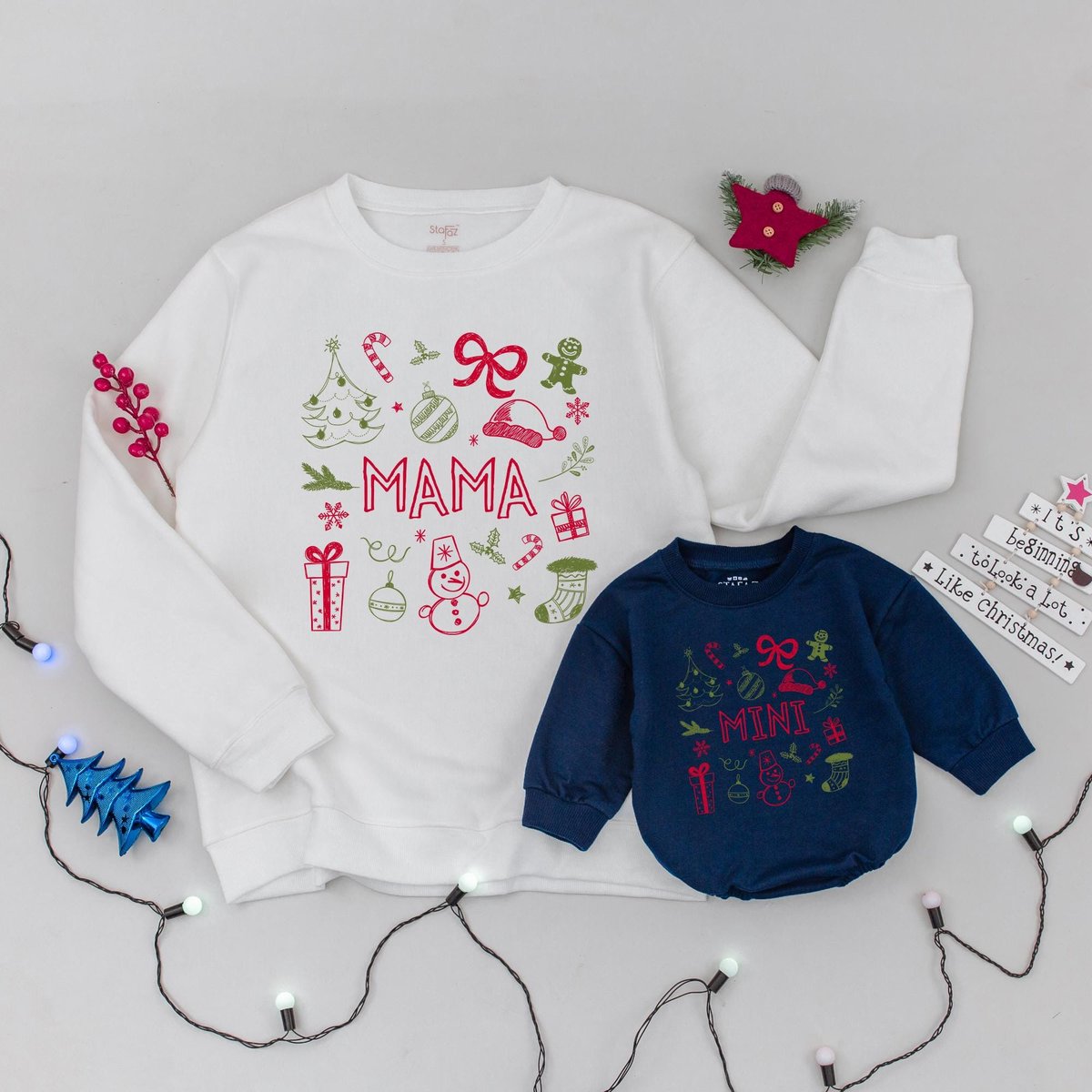 Mama and Mini Matching Christmas Sweatshirts Custom Mommy and Me Holiday Outfit Babys First Christma 436