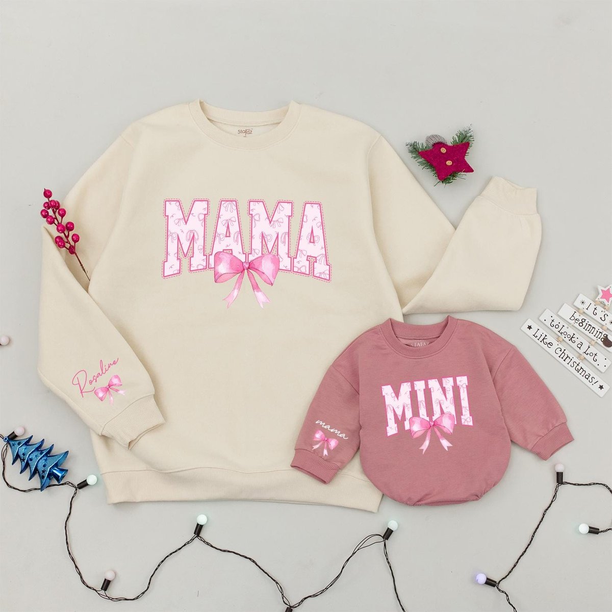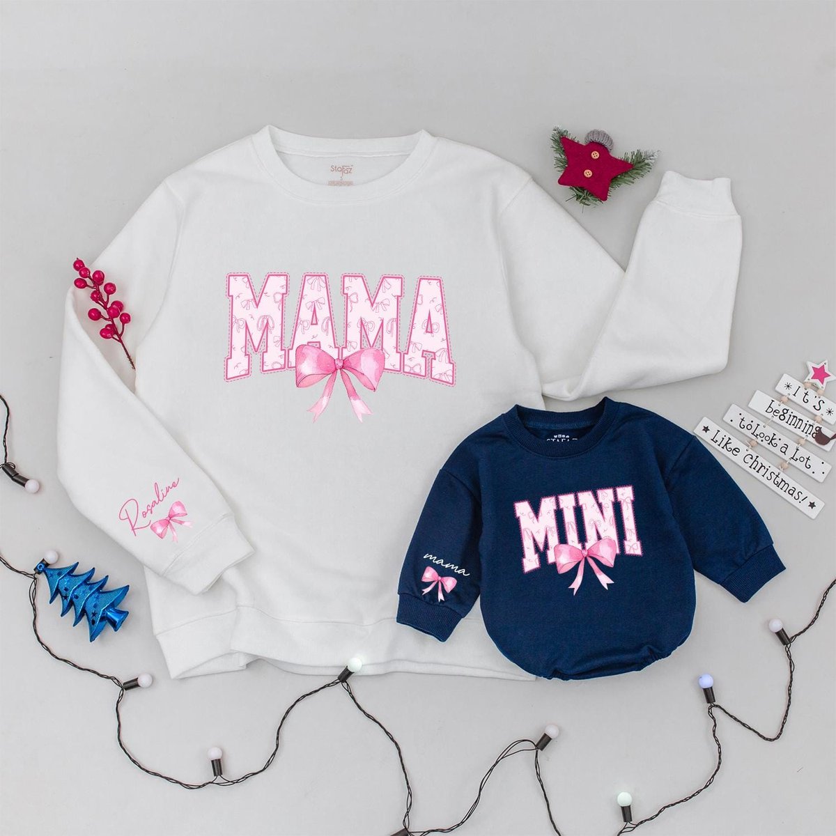 Mama And Mini Pink Bow Sweatshirt Mom And Baby Matching Shirt Mom and Daughter Sweatshirt Baby Girl 183