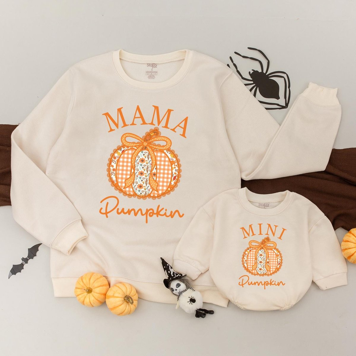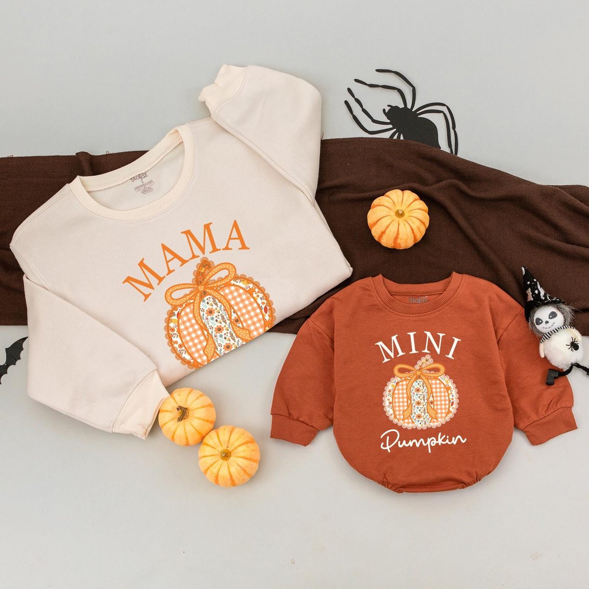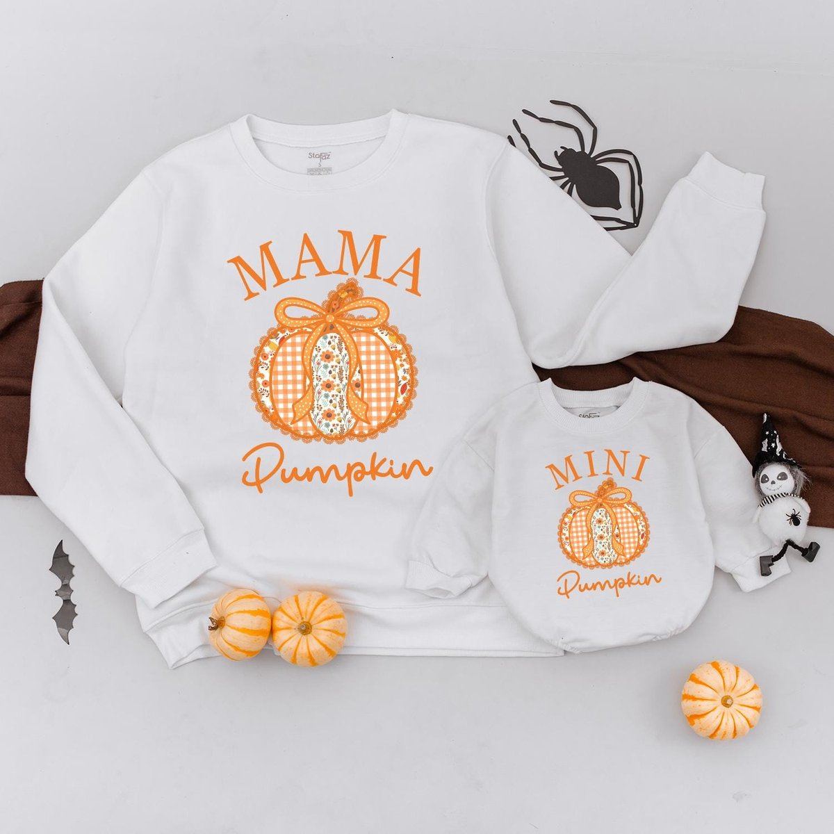 Mama and Mini Pumpkin Sweatshirts Autumn Mommy and Me Pumpkin Bow Fall Family Outfit Pumpkin Season 436