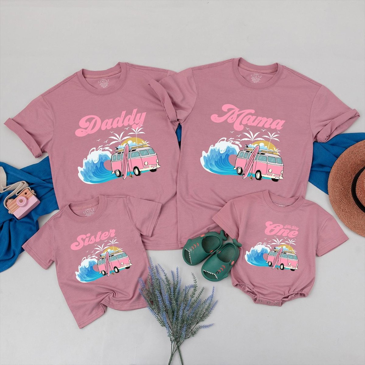 Matching Beach Family T Shirts Cute Surf Van Theme Outfit for Dad Mom Sister and Baby Fun Vacation a 187