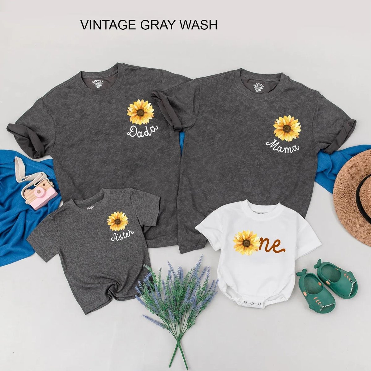 Matching Sunflower Family Shirts One Little Sunflower Romper 1st Birthday Outfit Personalized Flower 432