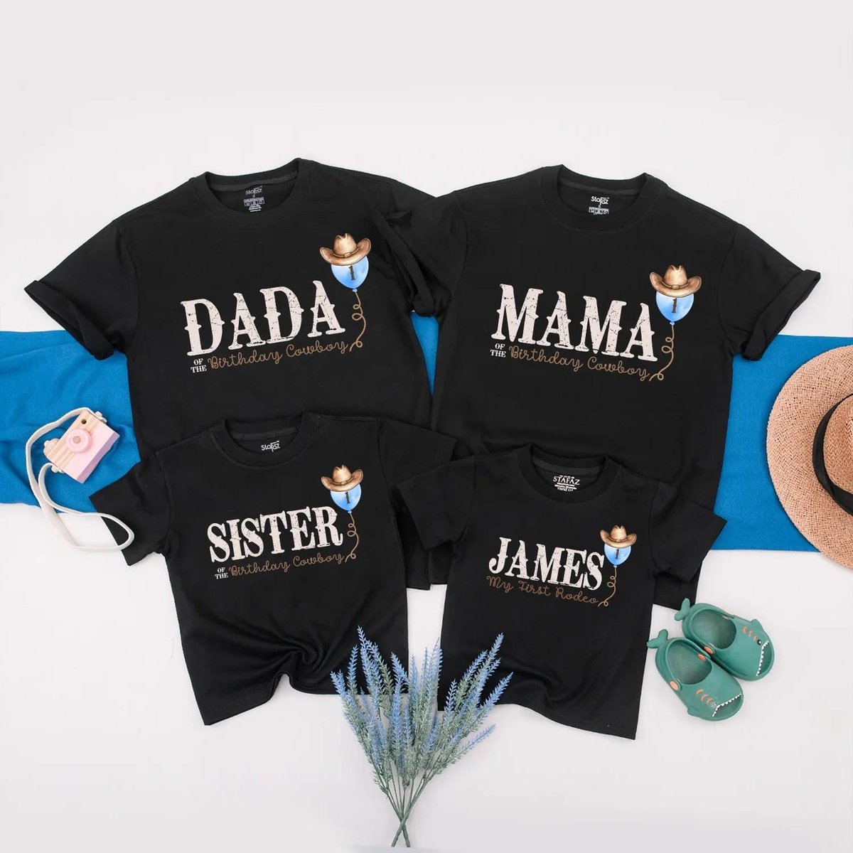 My First Rodeo Family Matching Outfit Personalized Western Clothes Custom Cowboy Birthday Shirts 1st 431