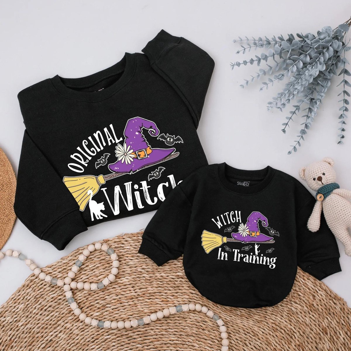 Original Witch Witch in Training Sweatshirt Matching Halloween Outfit Custom Mom and Baby Set Spooky 433