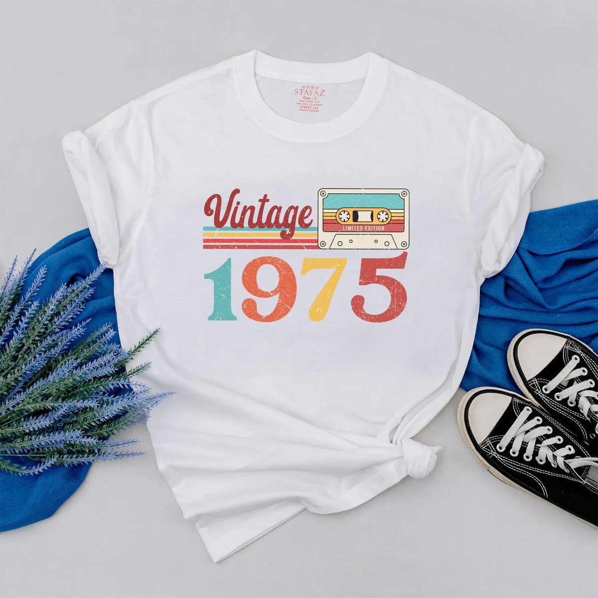 Personalized 1975 Vintage Cassette Shirt 50th Birthday Gift for Women and Men Vintage Cassette Outfi 430