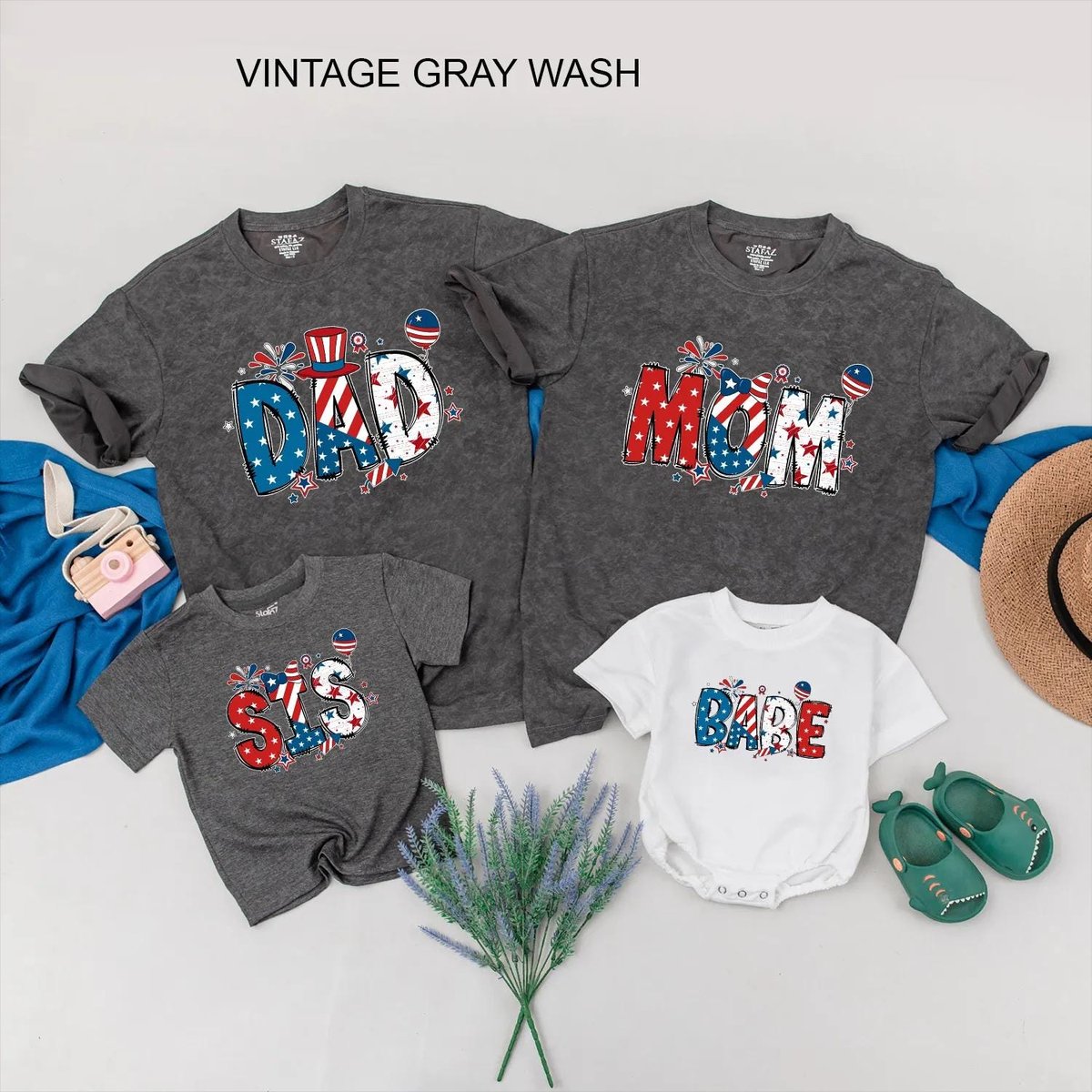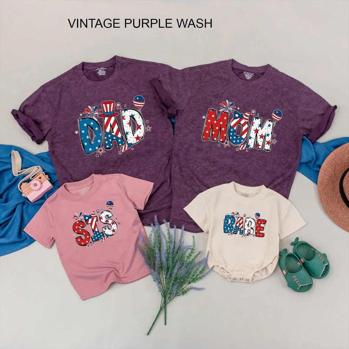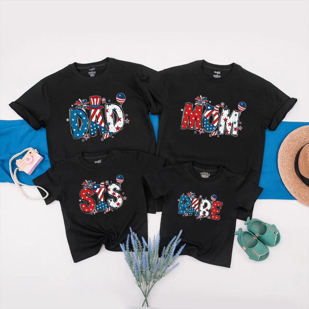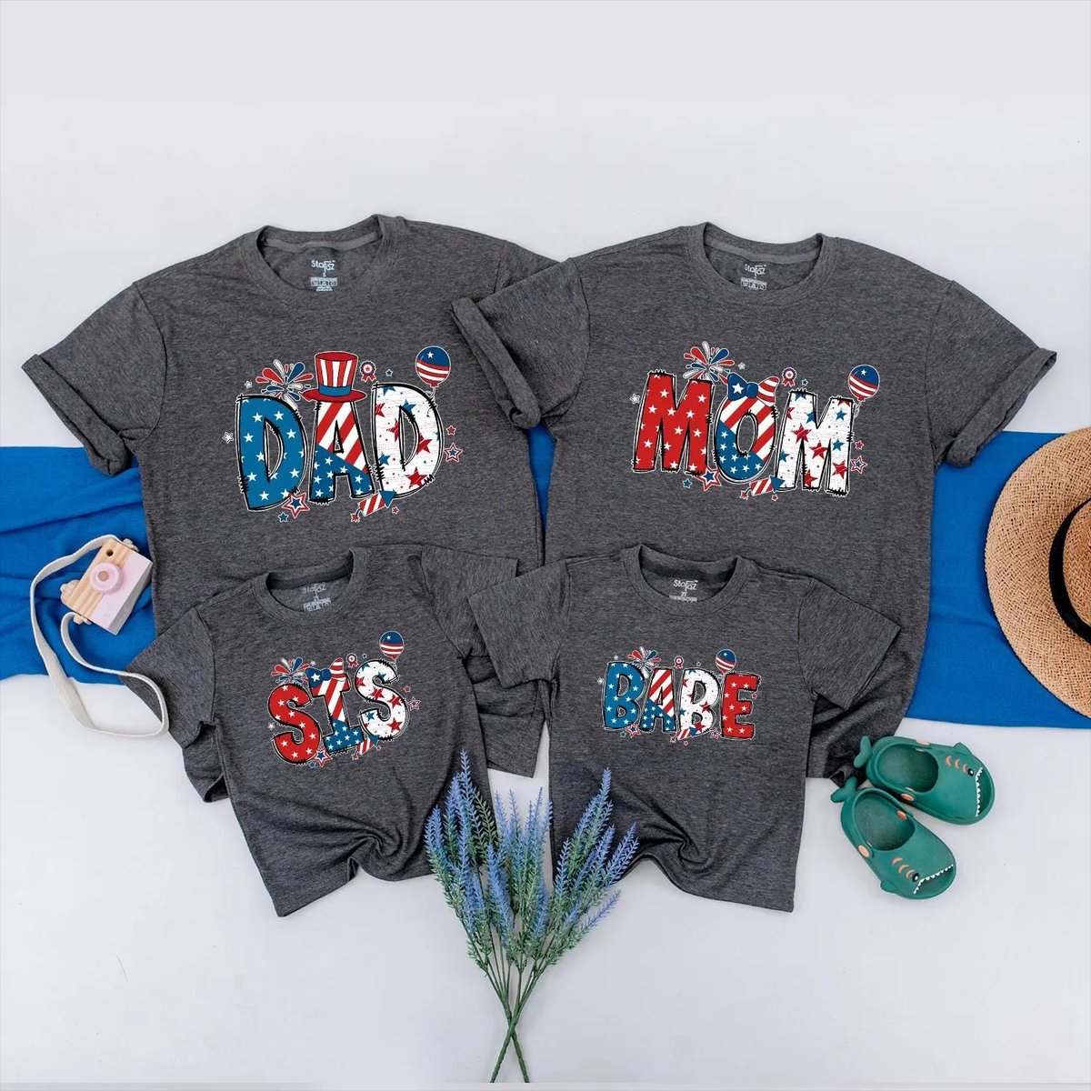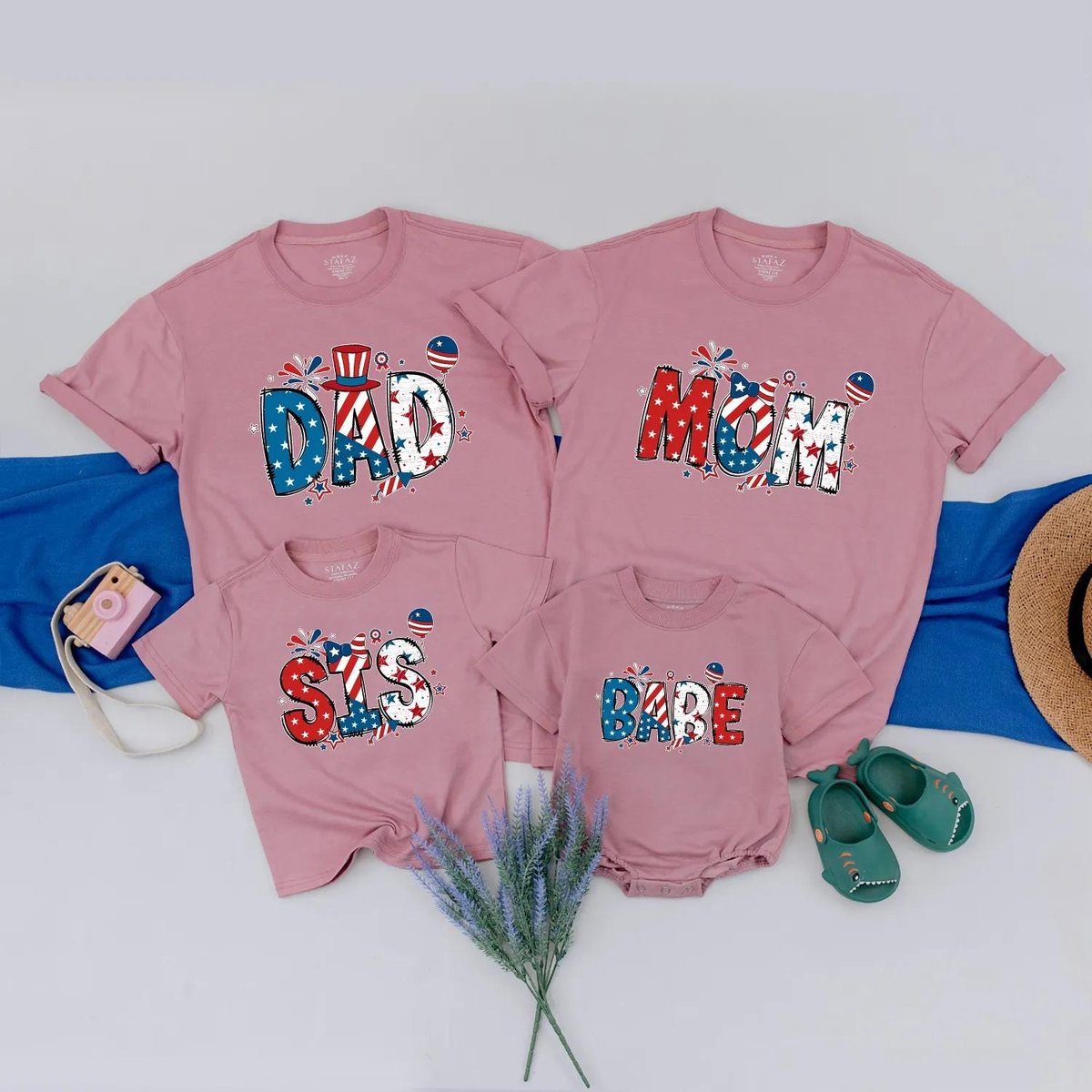 Personalized 4th of July Matching Family Shirts Patriotic Firework Tees for Dad Mom Sister and Baby 430