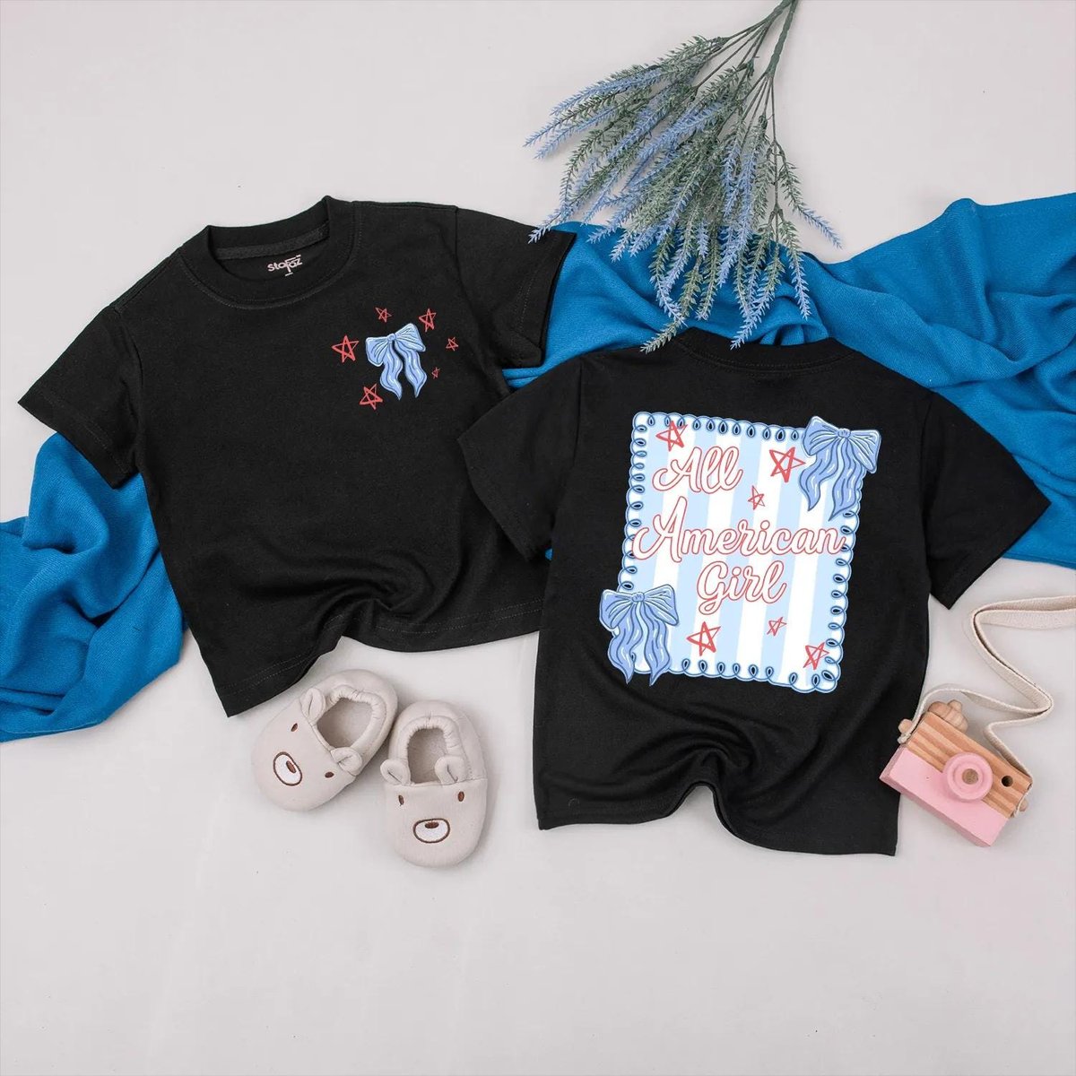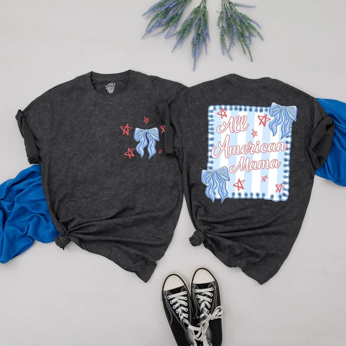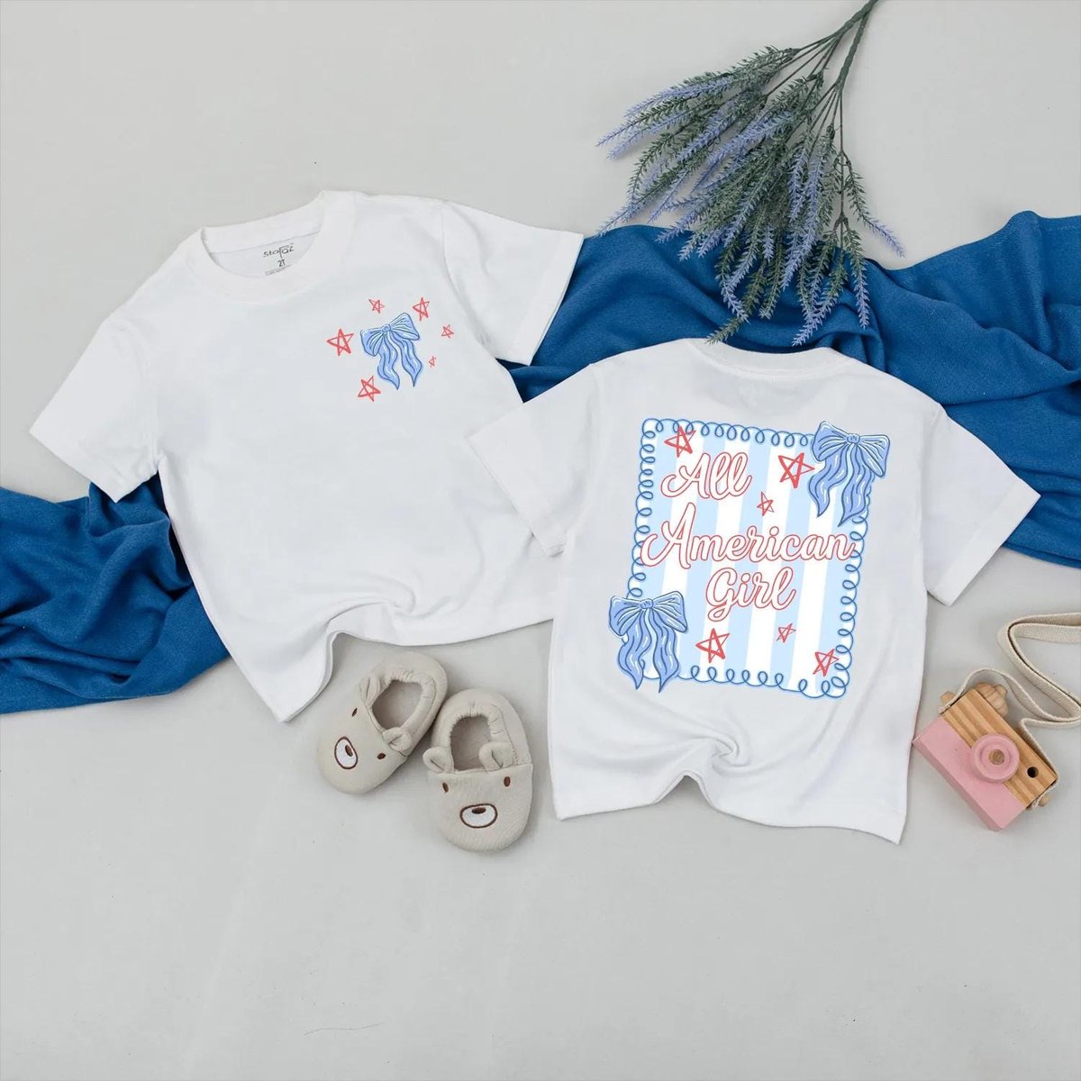 Personalized All American Mama and Girl Matching Outfit 4th of July Bow Shirts Custom Independence D 430