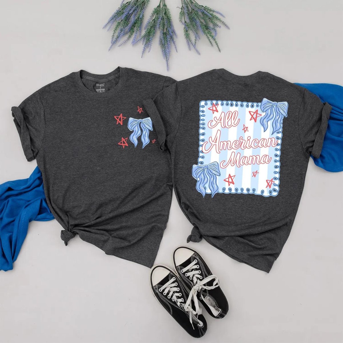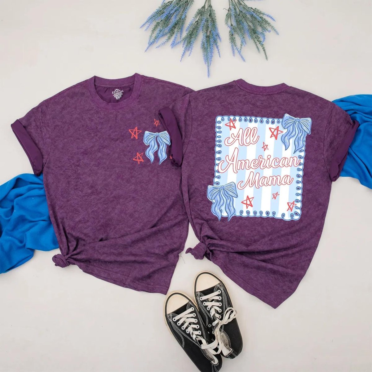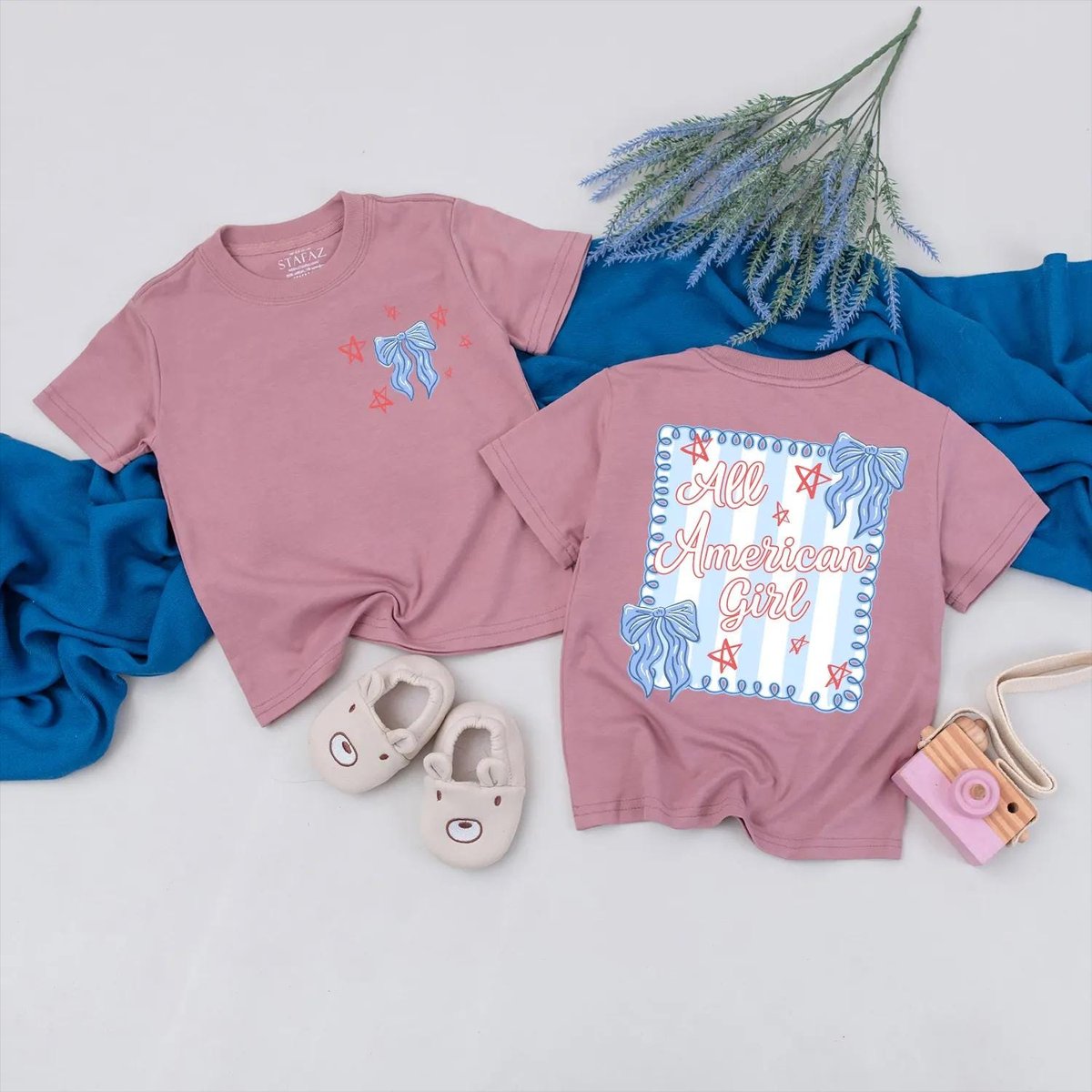 Personalized All American Mama and Girl Matching Outfit 4th of July Bow Shirts Custom Independence D 430