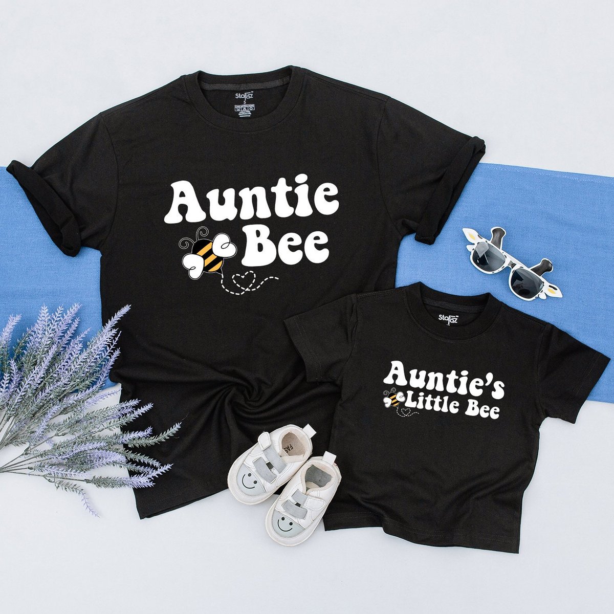 Personalized Auntie Bee And Auntie’s Little Bee Shirt New Auntie Shirt Bee baby ShowerNeutral Boho 172