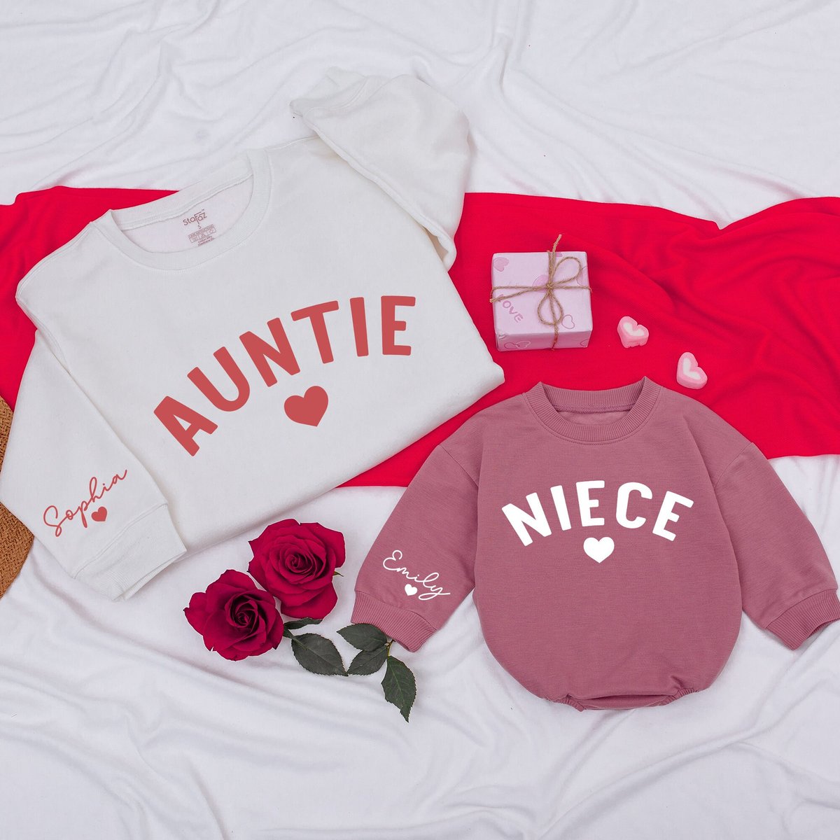 Personalized Auntie and Niece Valentine Sweatshirts Valentines Day Shirt For Mom Mommy and Me Outfit 163