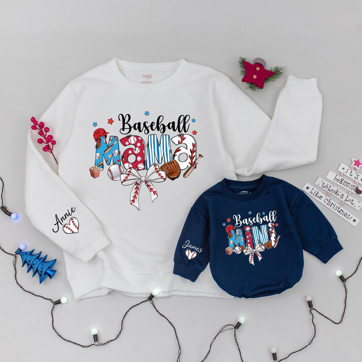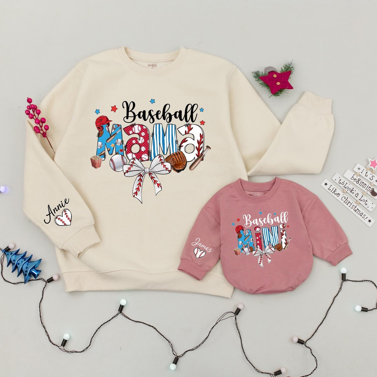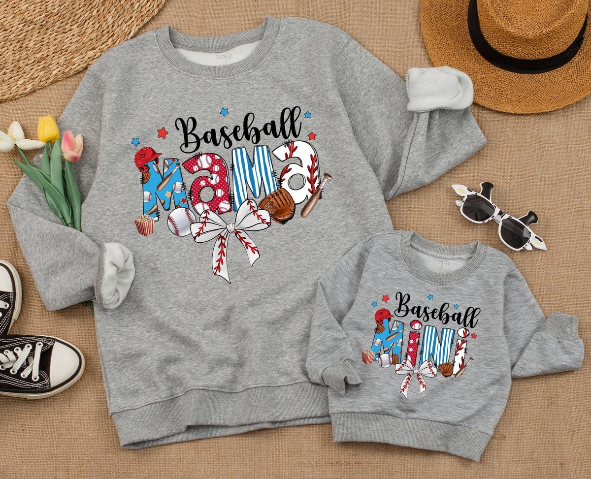 Personalized Baseball Family Sweatshirt Mama Baseball Sweatshirt Baseball Season Gifts Mommy and Me 185