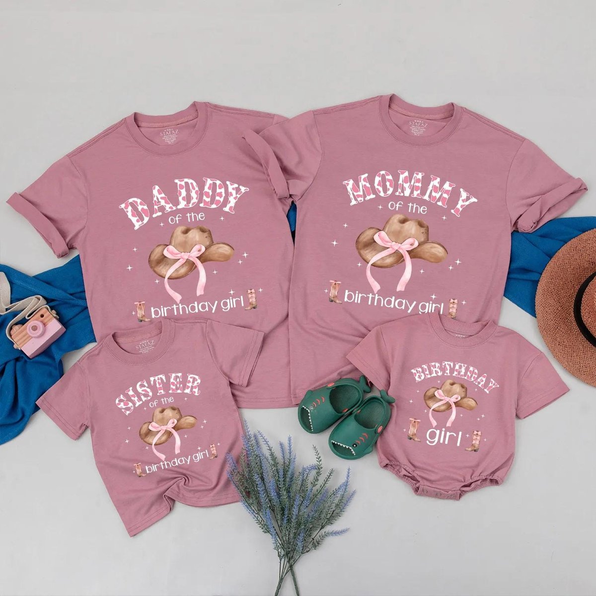 Personalized Cowgirl Family Matching Birthday Outfit Western Theme Party Shirts Custom Pink Rodeo fo 430