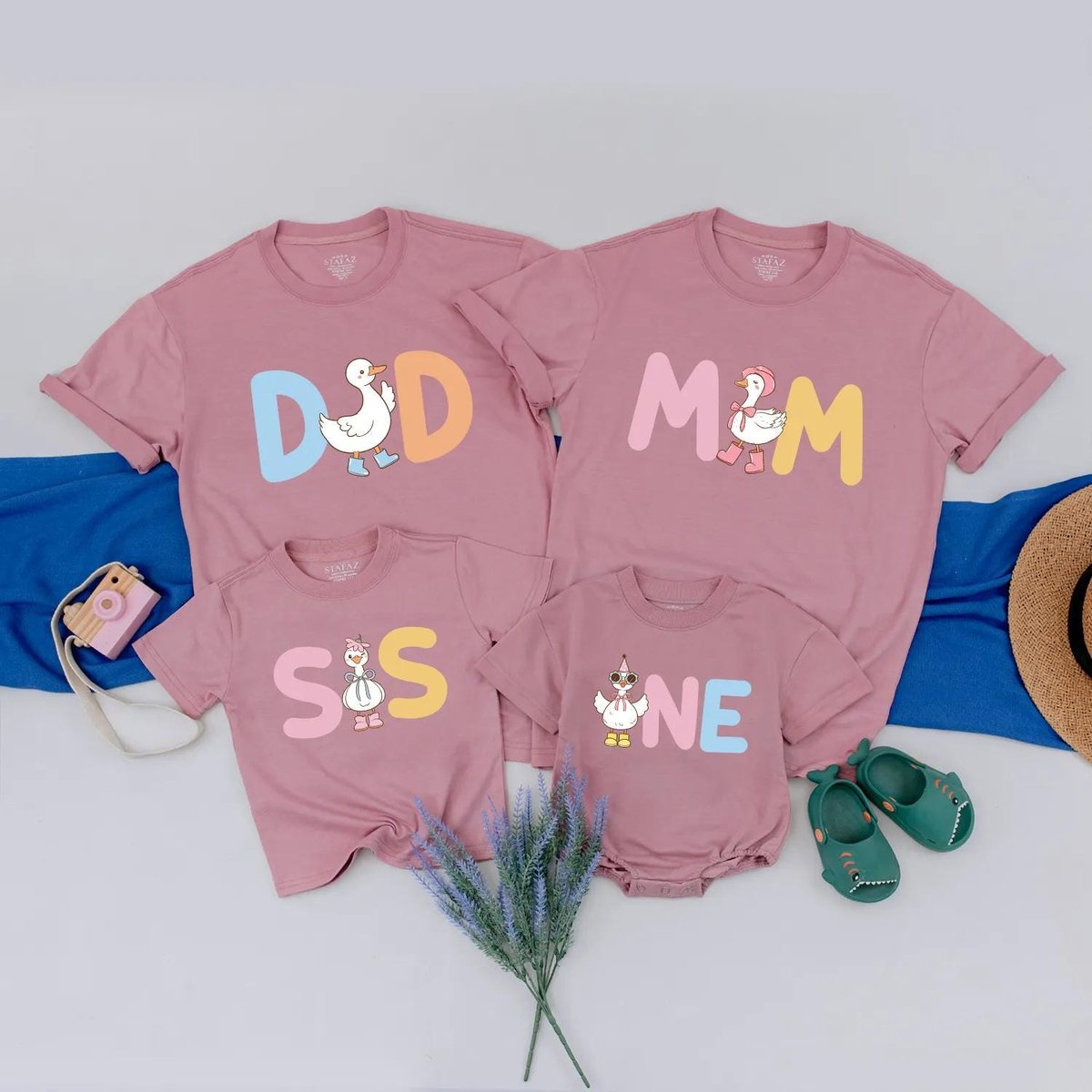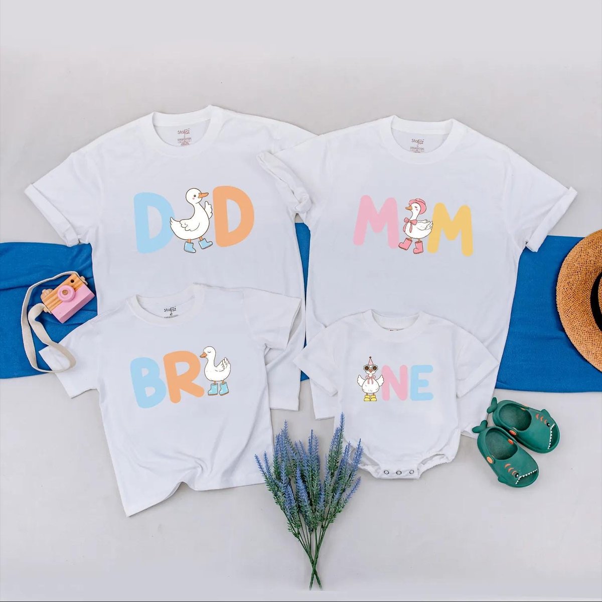 Personalized Funny Duck Family Matching Outfit 1st Birthday Baby Girl Romper Cute Duck Party Shirts 430