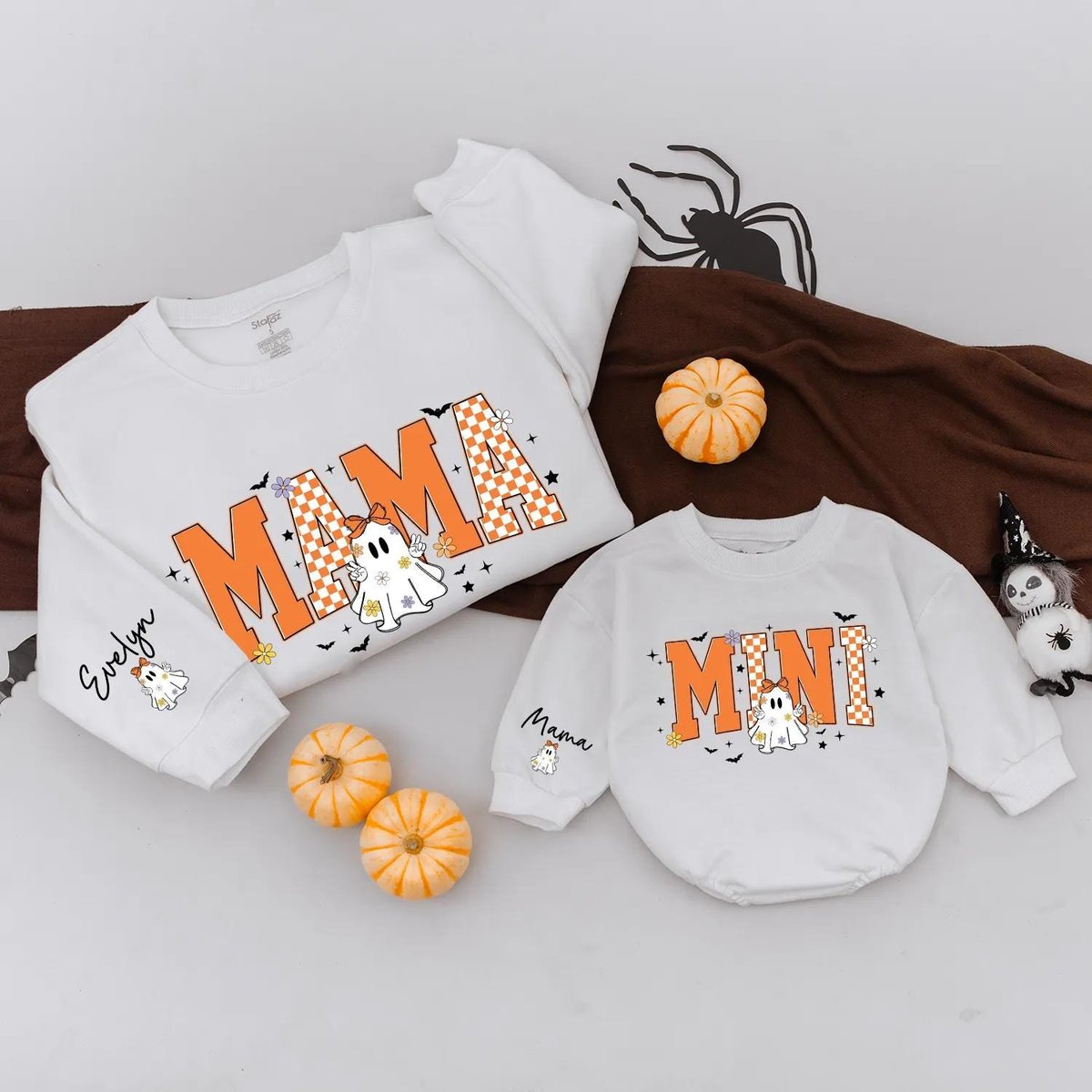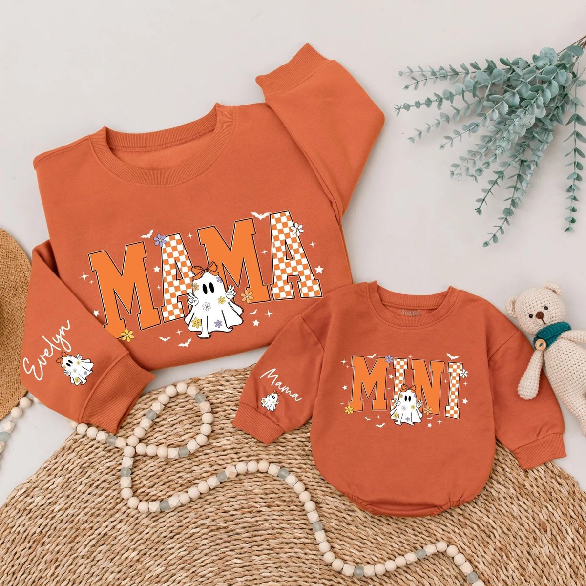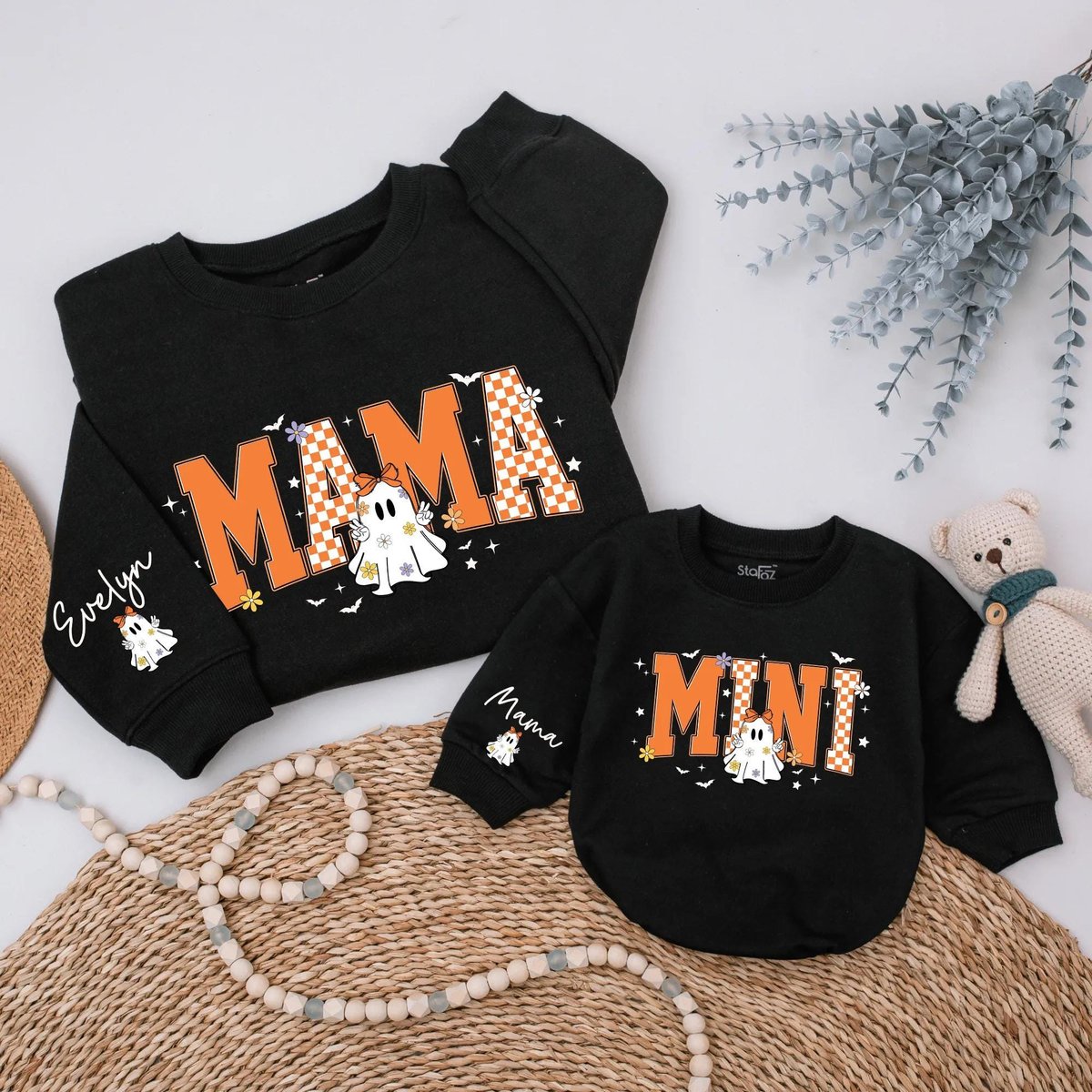 Personalized Mama Mini Halloween Matching Sweatshirts Mommy and Me Sweaters Retro Halloween Boo Cust 434