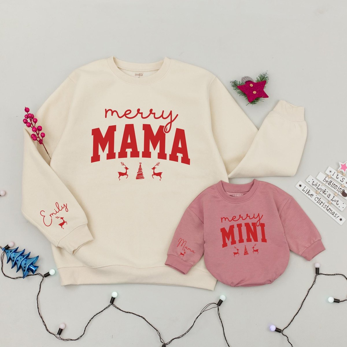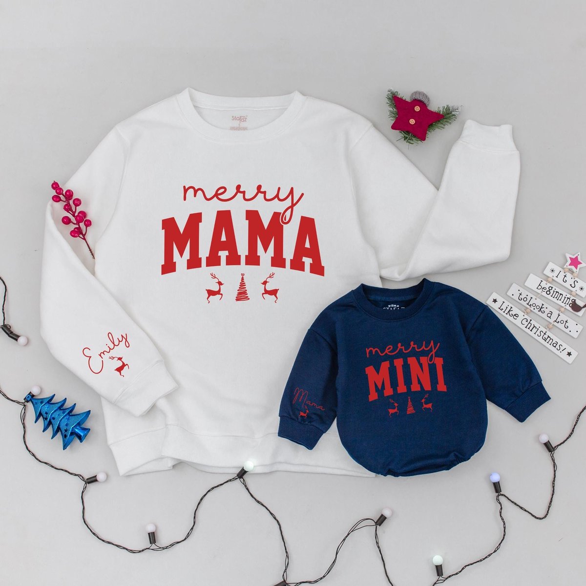 Personalized Merry Mama and Mini Sweaters Family Christmas Sweatshirt Matching Outfits Trendy Christ 179