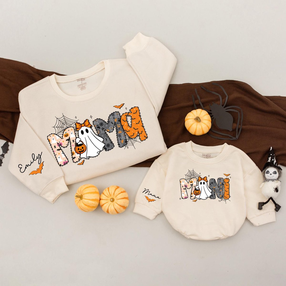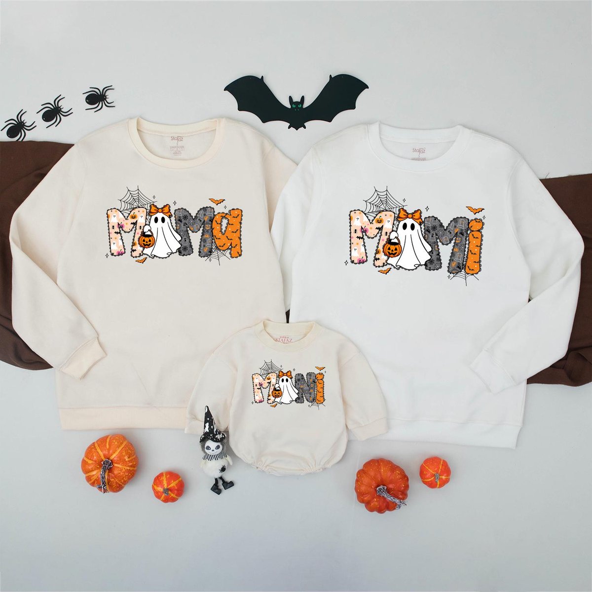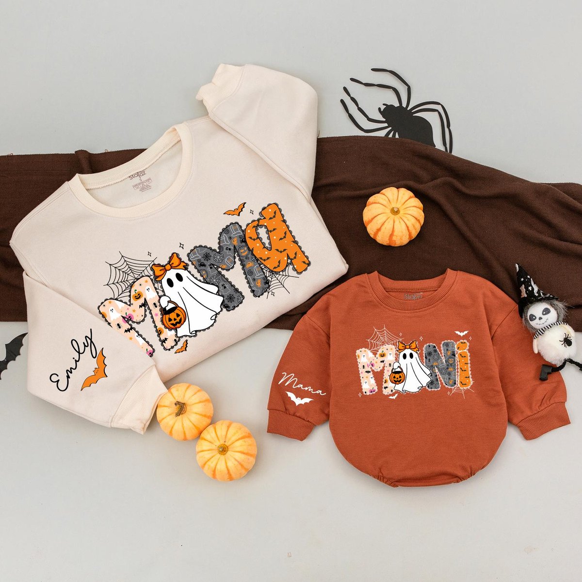 Personalized Mama Mini Halloween Matching Sweatshirts Spooky Mommy and Me Retro Halloween Boo Custom 435