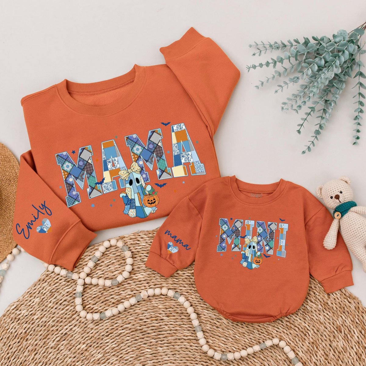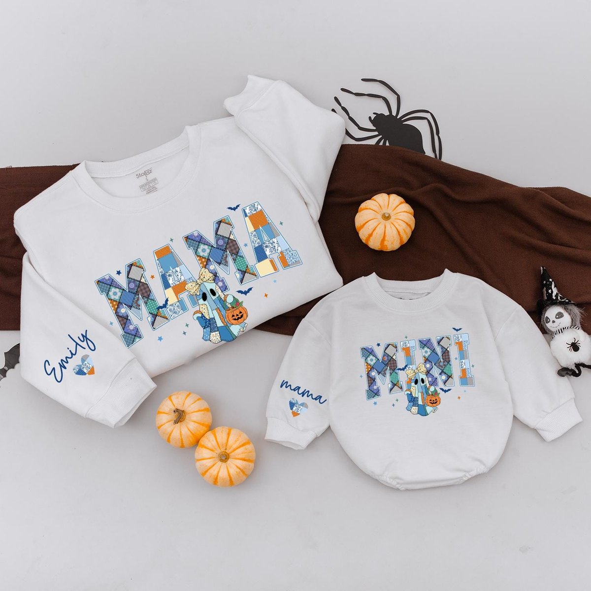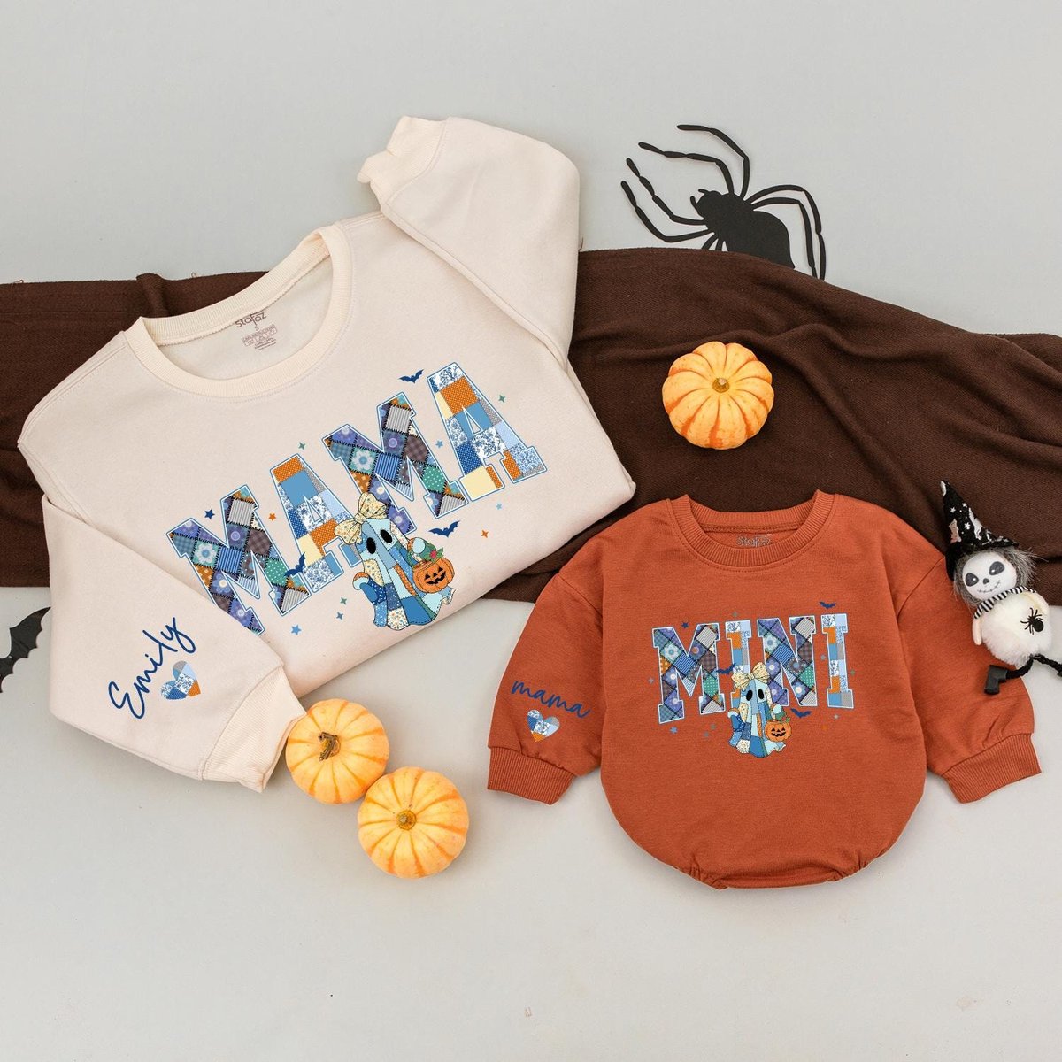 Personalized Mama Mini Halloween Matching Sweatshirts Spooky Mommy and Me Retro Halloween Ghost Cust 435