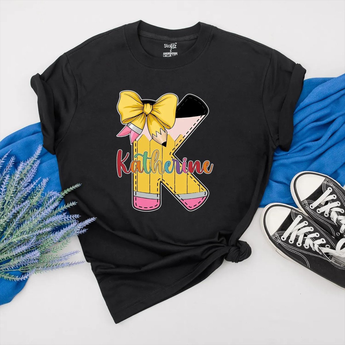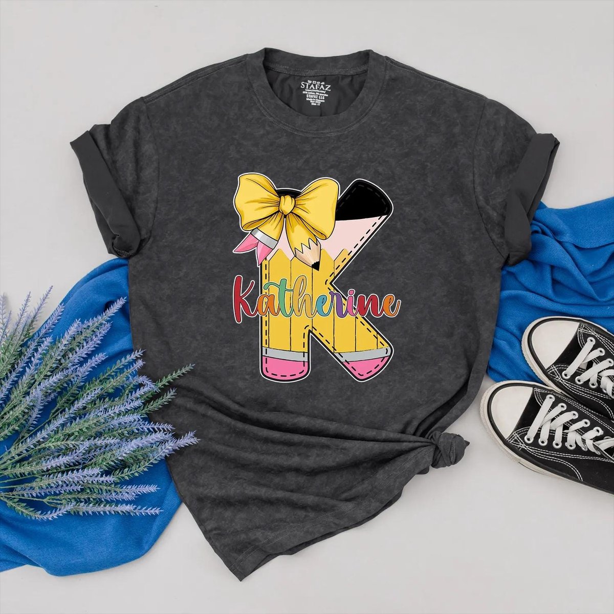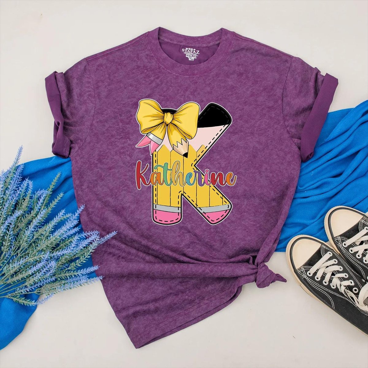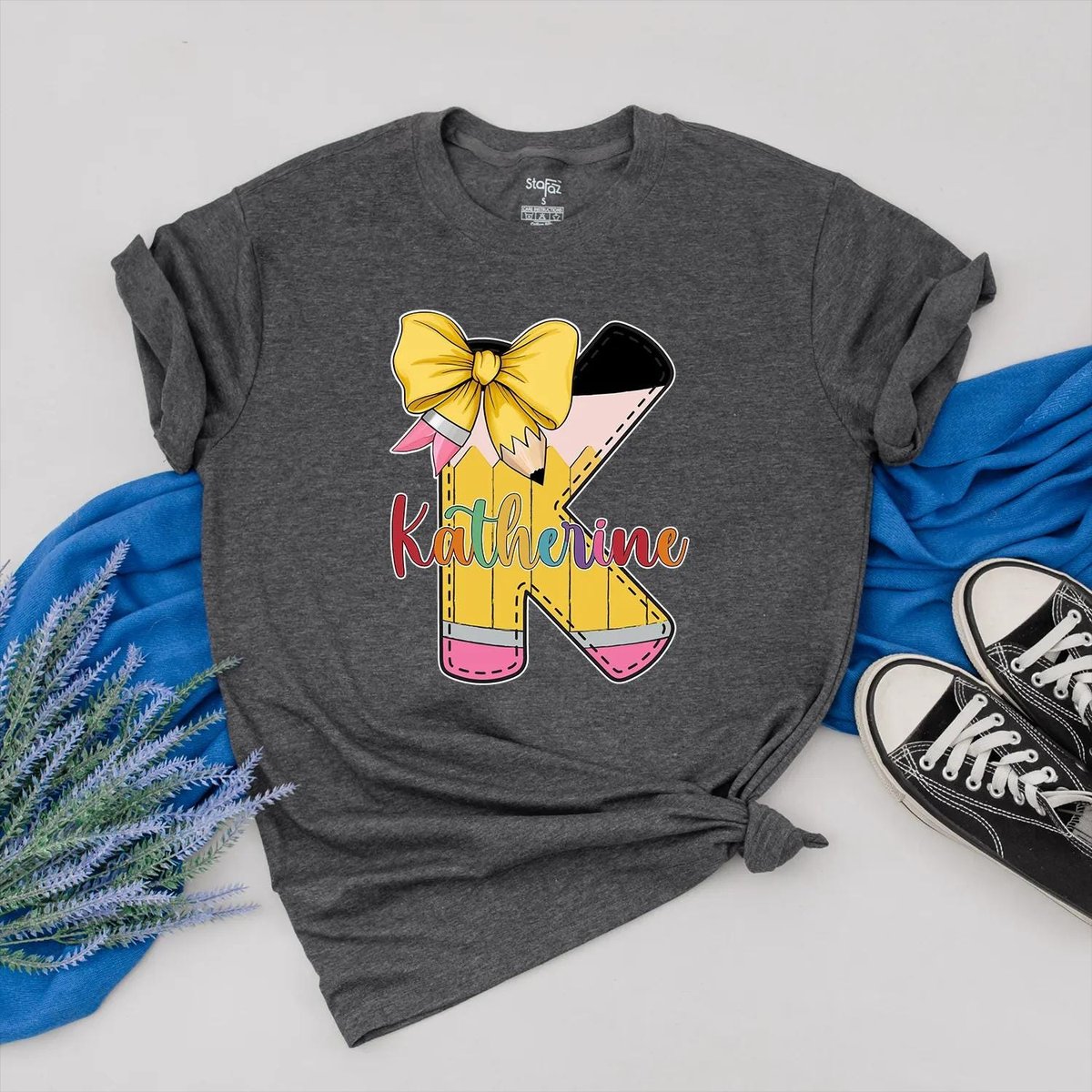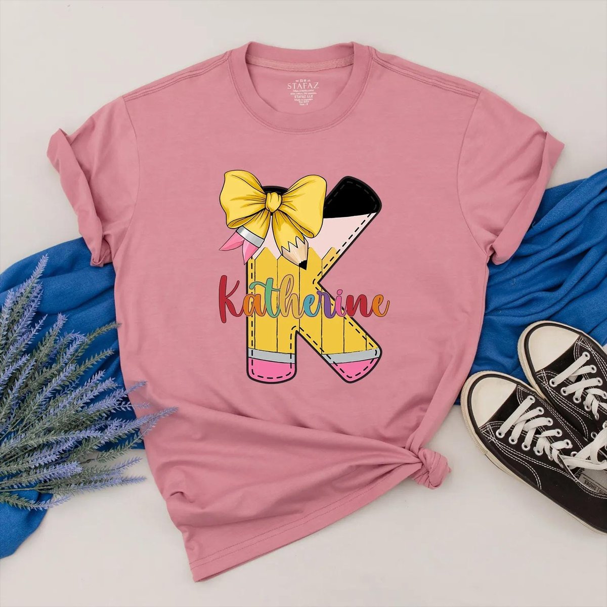 Personalized Pencil Shirt Custom Name Teacher Clothes Bow and Colorful Back to School Outfit Teacher 431