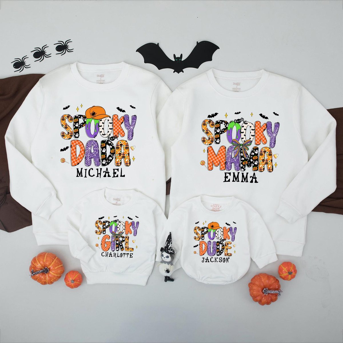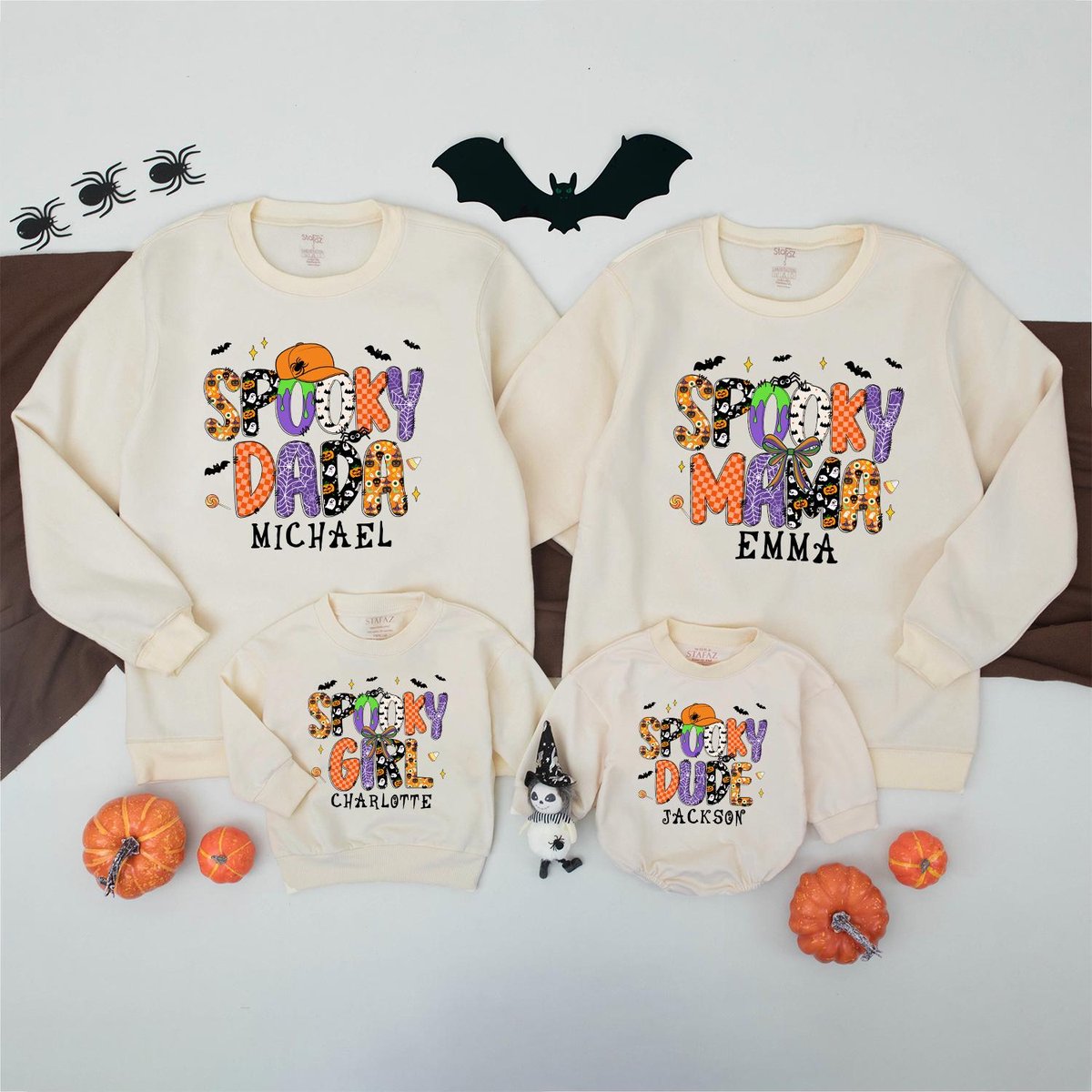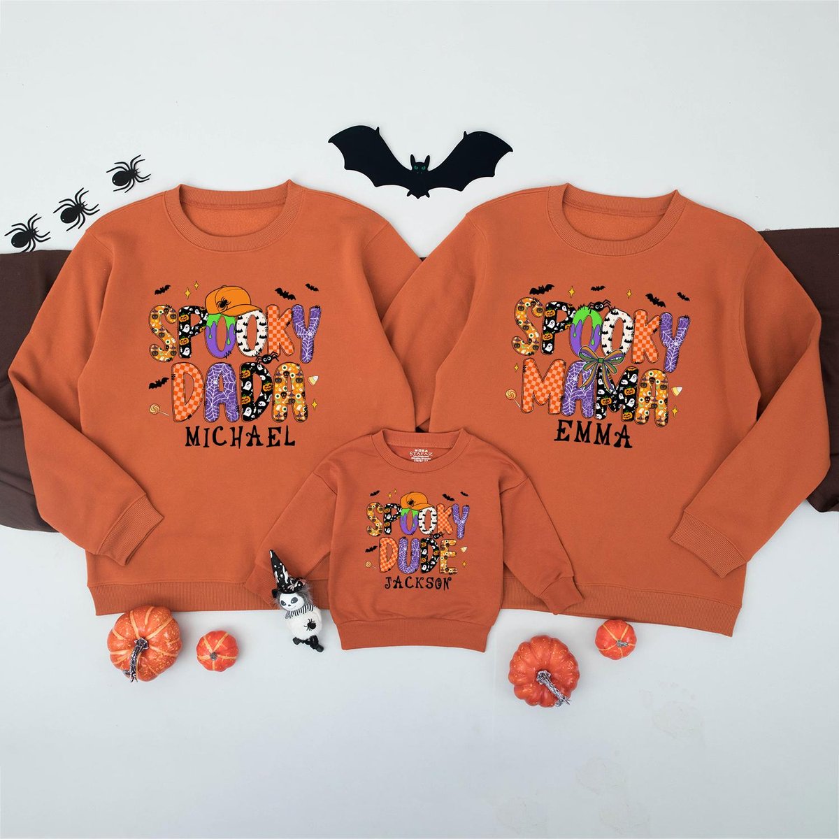 Personalized Spooky Family Sweatshirt Retro Halloween Matching Sweater Spooky Season Shirt Halloween 434