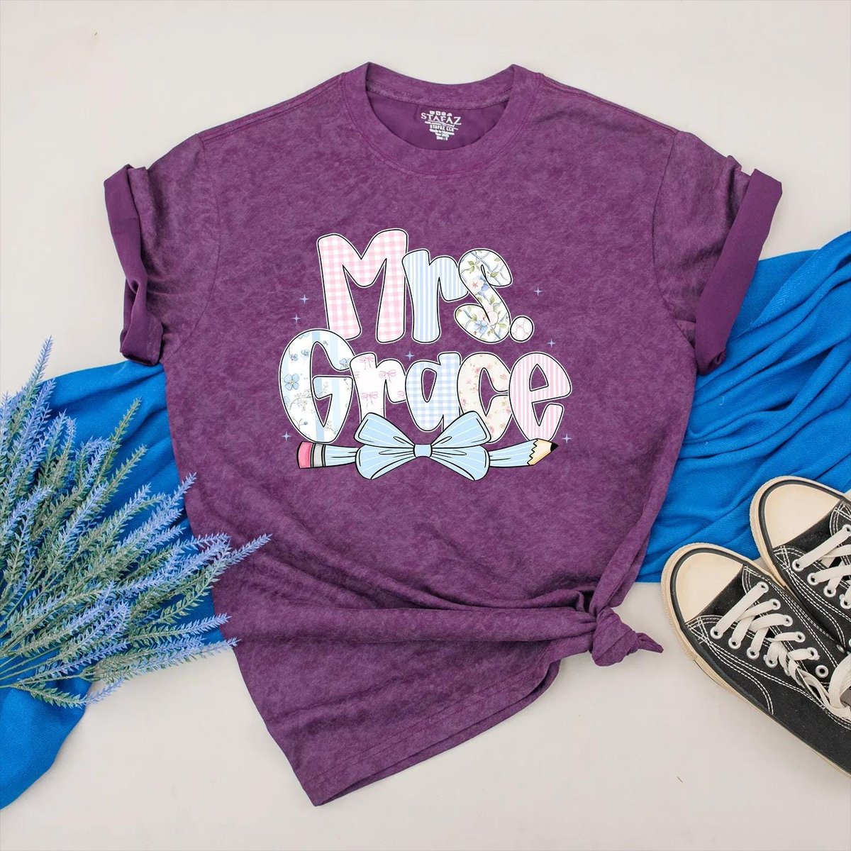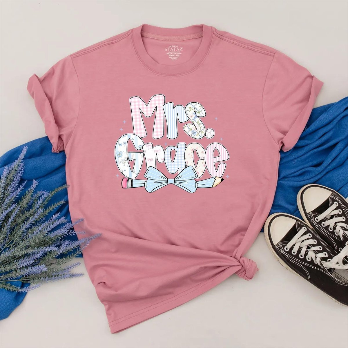 Personalized Teacher Shirt Cute Back to School Outfit Pencil Bow Tee for Teacher First Day of School 432