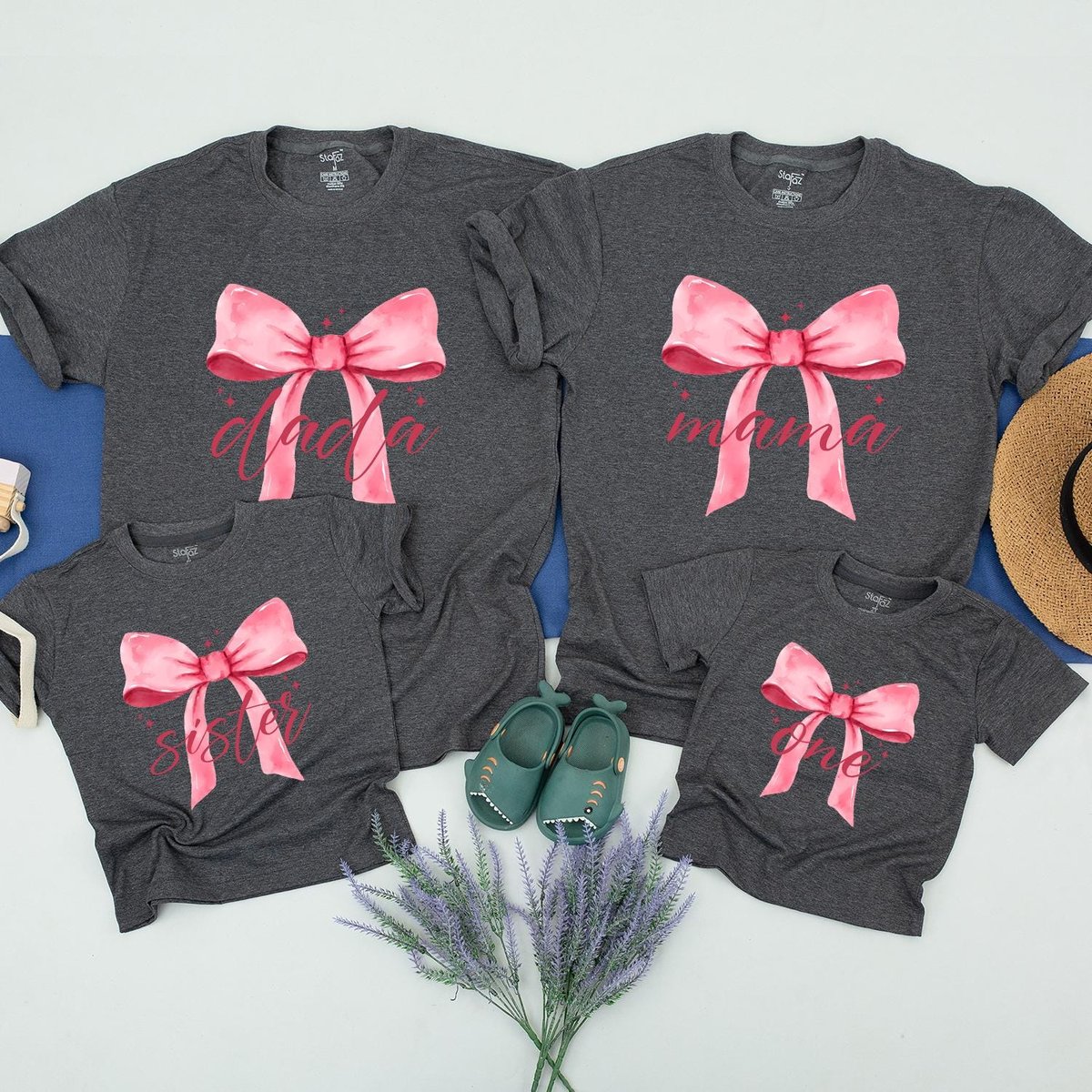 Pink Bow First Birthday Family Shirts Bow Birthday Girl Bow Birthday Shirts First Birthday Girl Pink 181