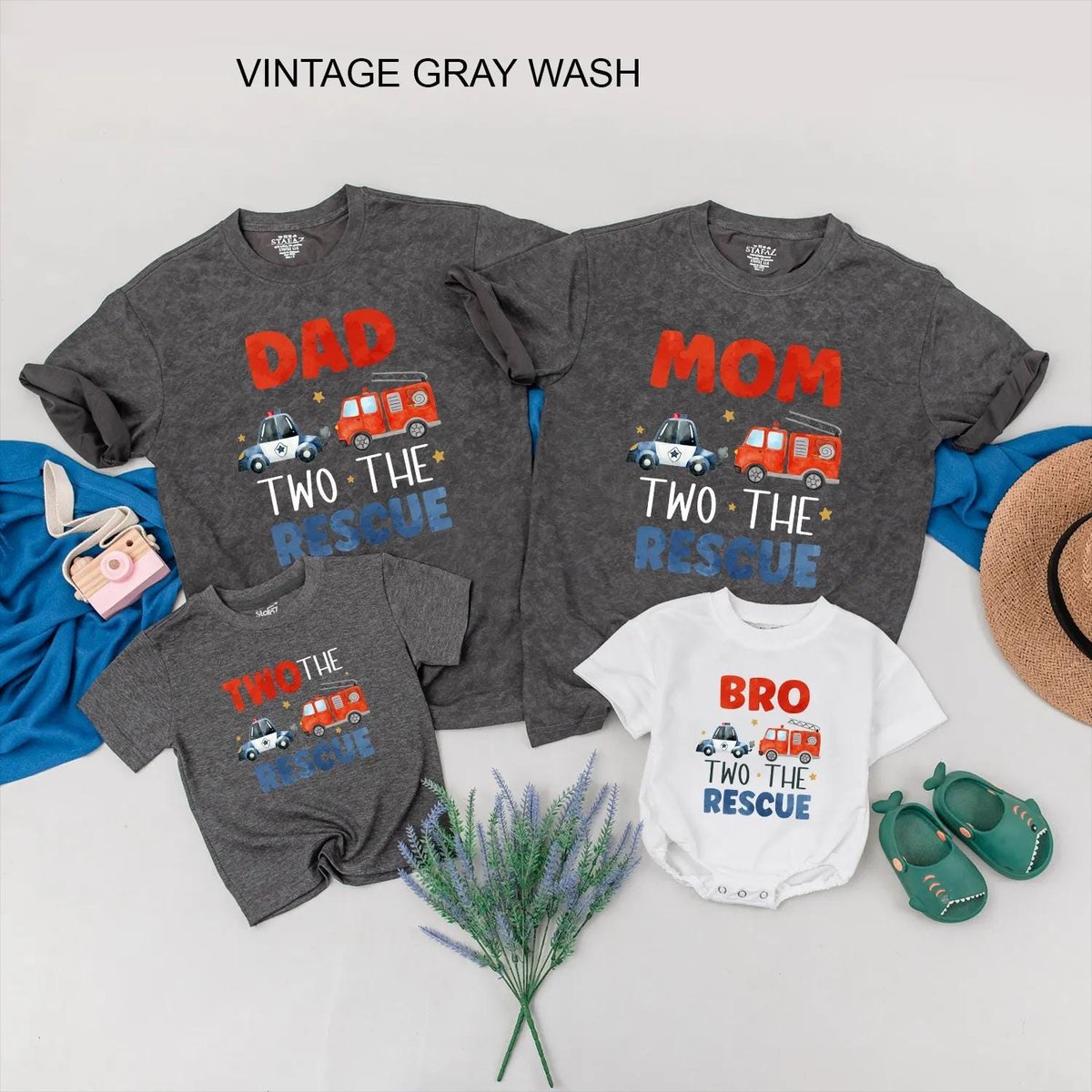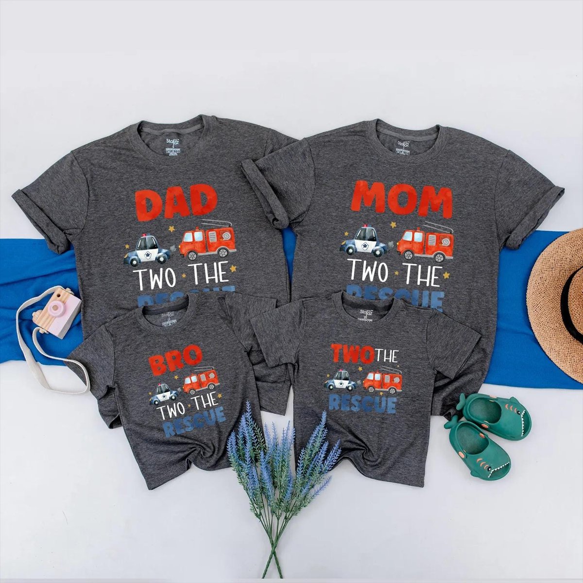 Police and Firefighter Birthday Shirt Emergency Vehicle Outfit Birthday Matching Clothes Fire Truck 432