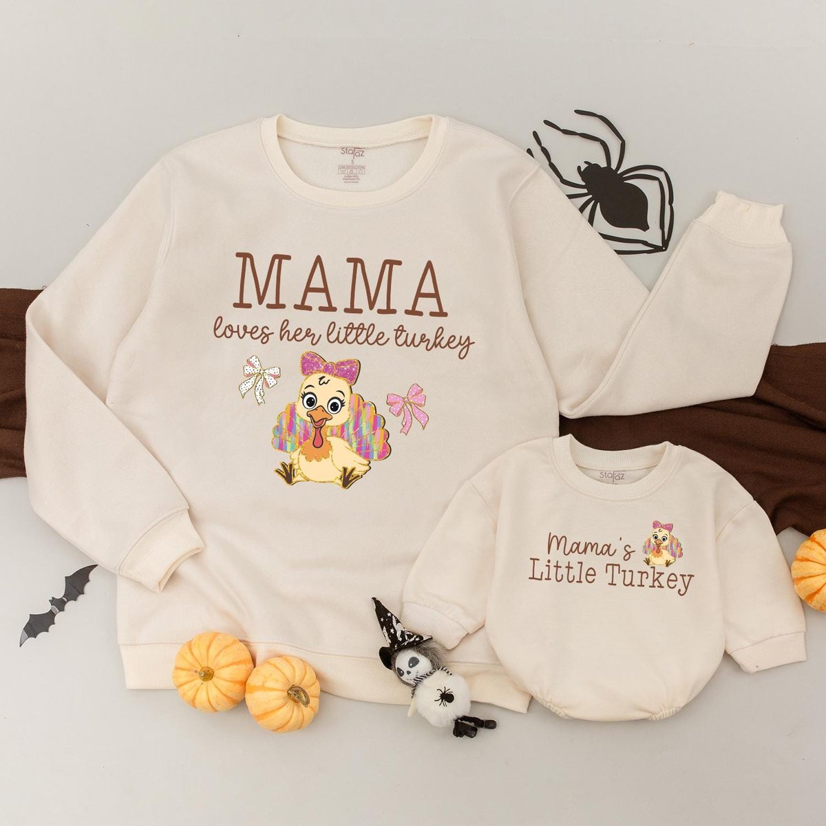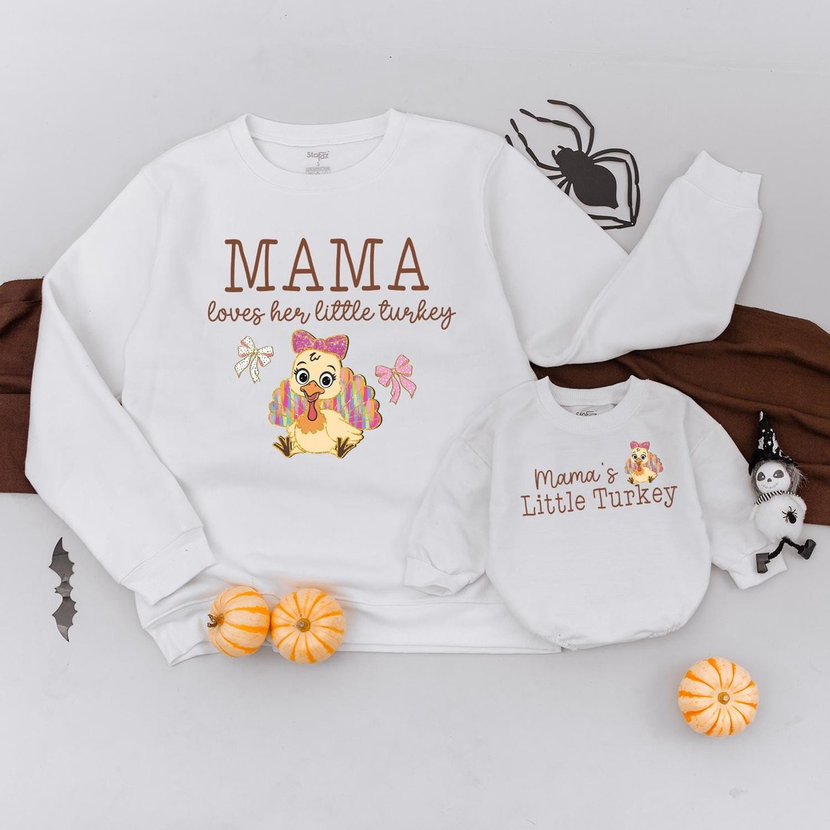 This Mama Loves Her Little Turkey Matching Sweatshirt Mama Mini Thanksgiving Outfit Mommy and Me Tur 435