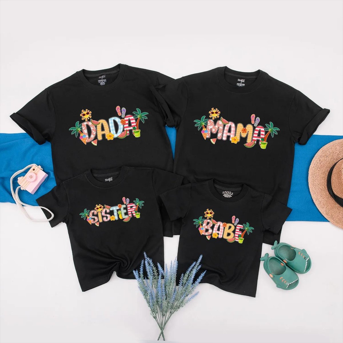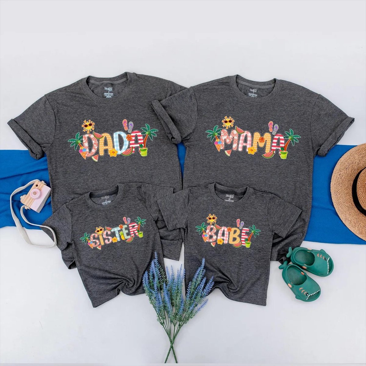Tropical Matching Family Vacation Shirts Summer Beach Outfits for Mom Dad Baby Kids Custom Name Pers 430