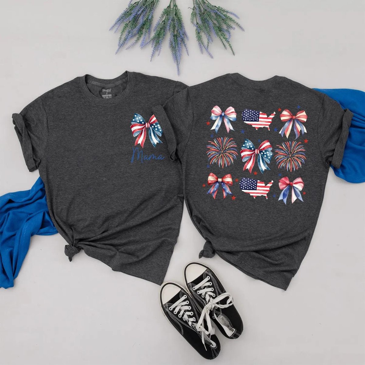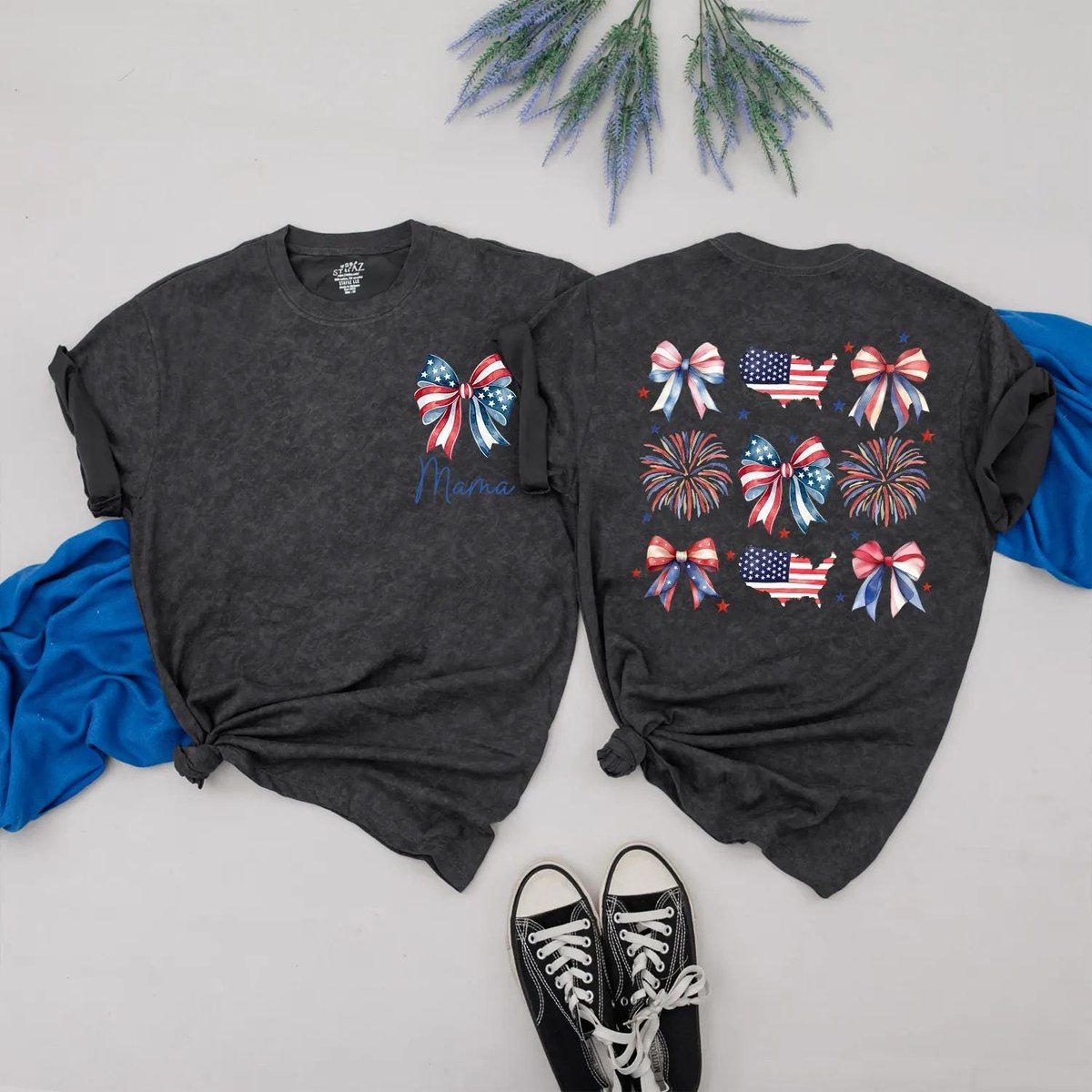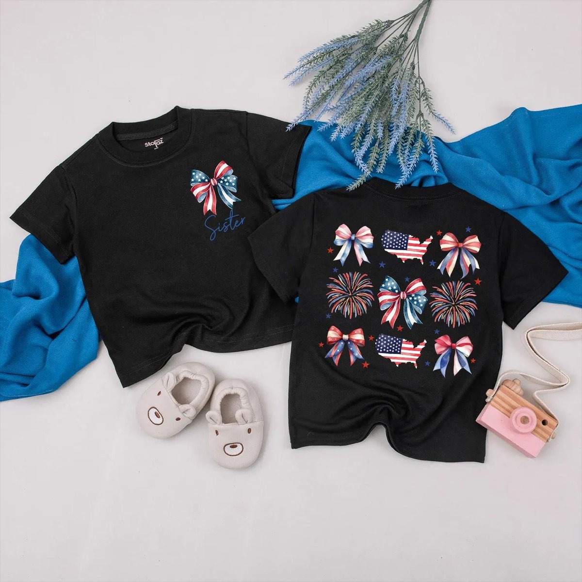 US 4th of July Matching Family Outfits Mama and Mini Bow Fireworks Shirts USA Patriotic Baby Romper 430