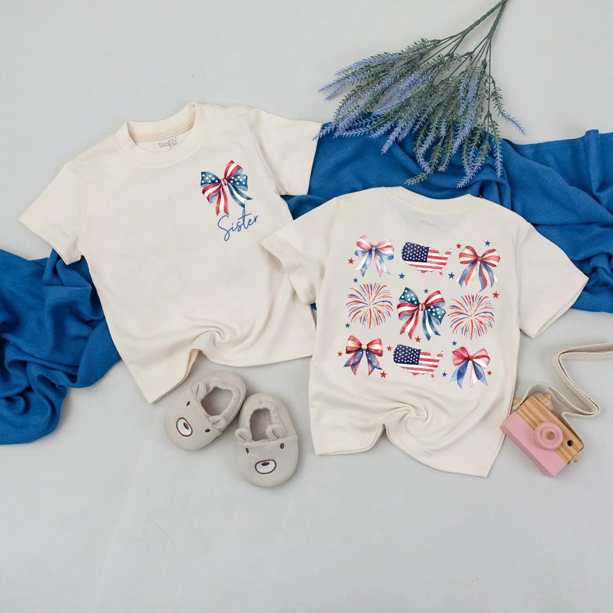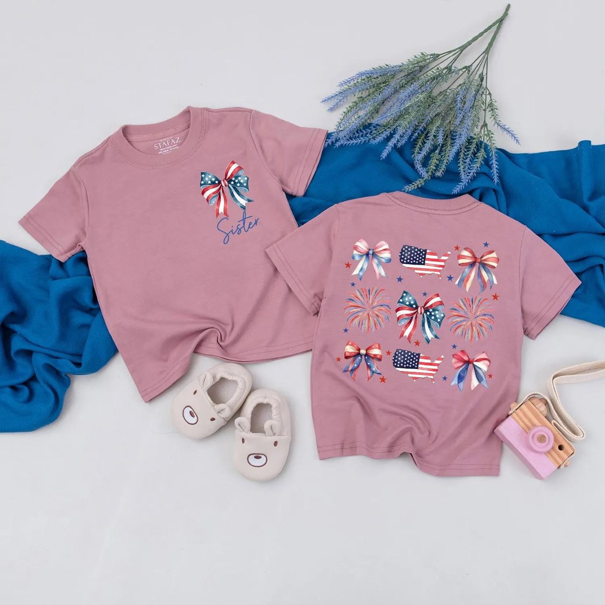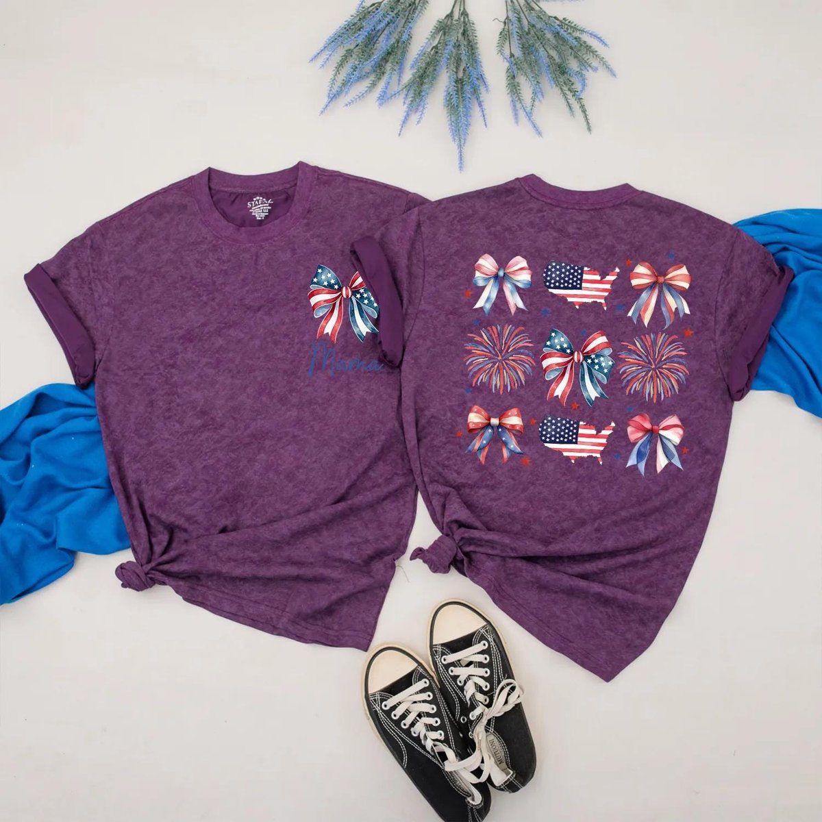 US 4th of July Matching Family Outfits Mama and Mini Bow Fireworks Shirts USA Patriotic Baby Romper 430