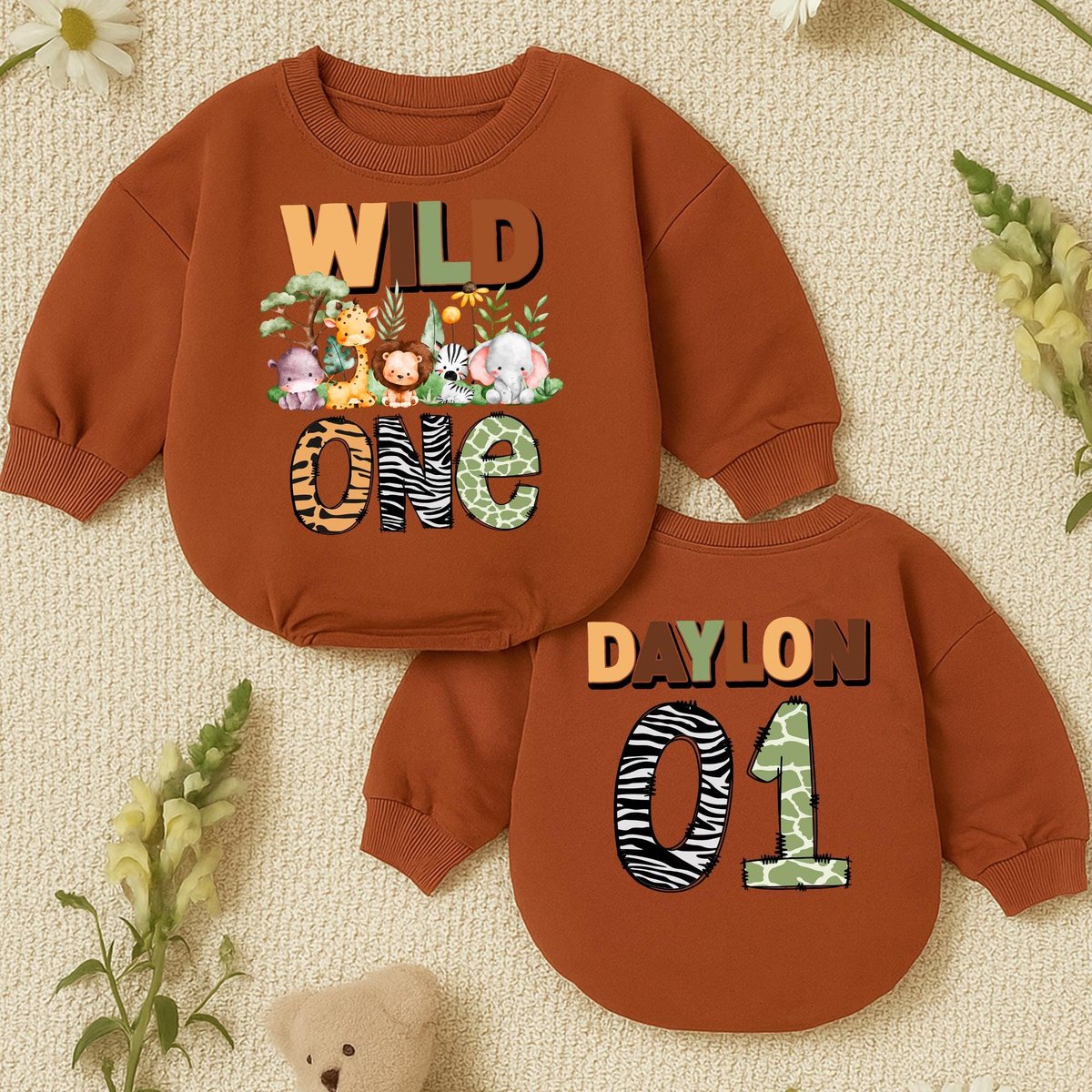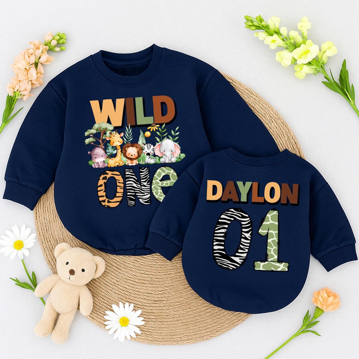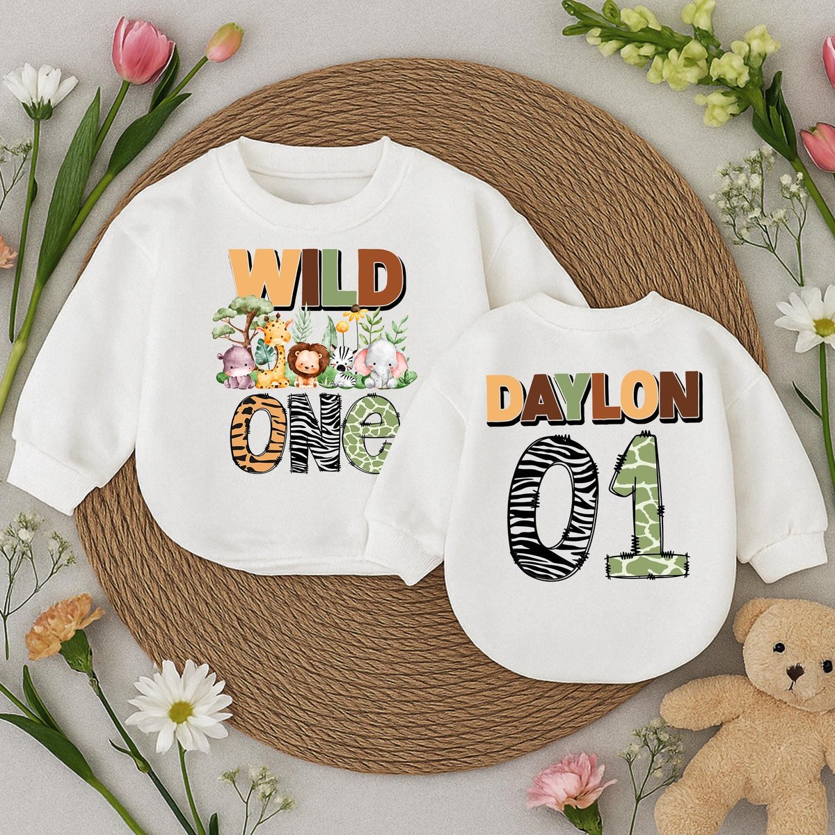 Birthday Safari Baby romper personalized Outfit with name number Wild One toddler romper jungle anim 433