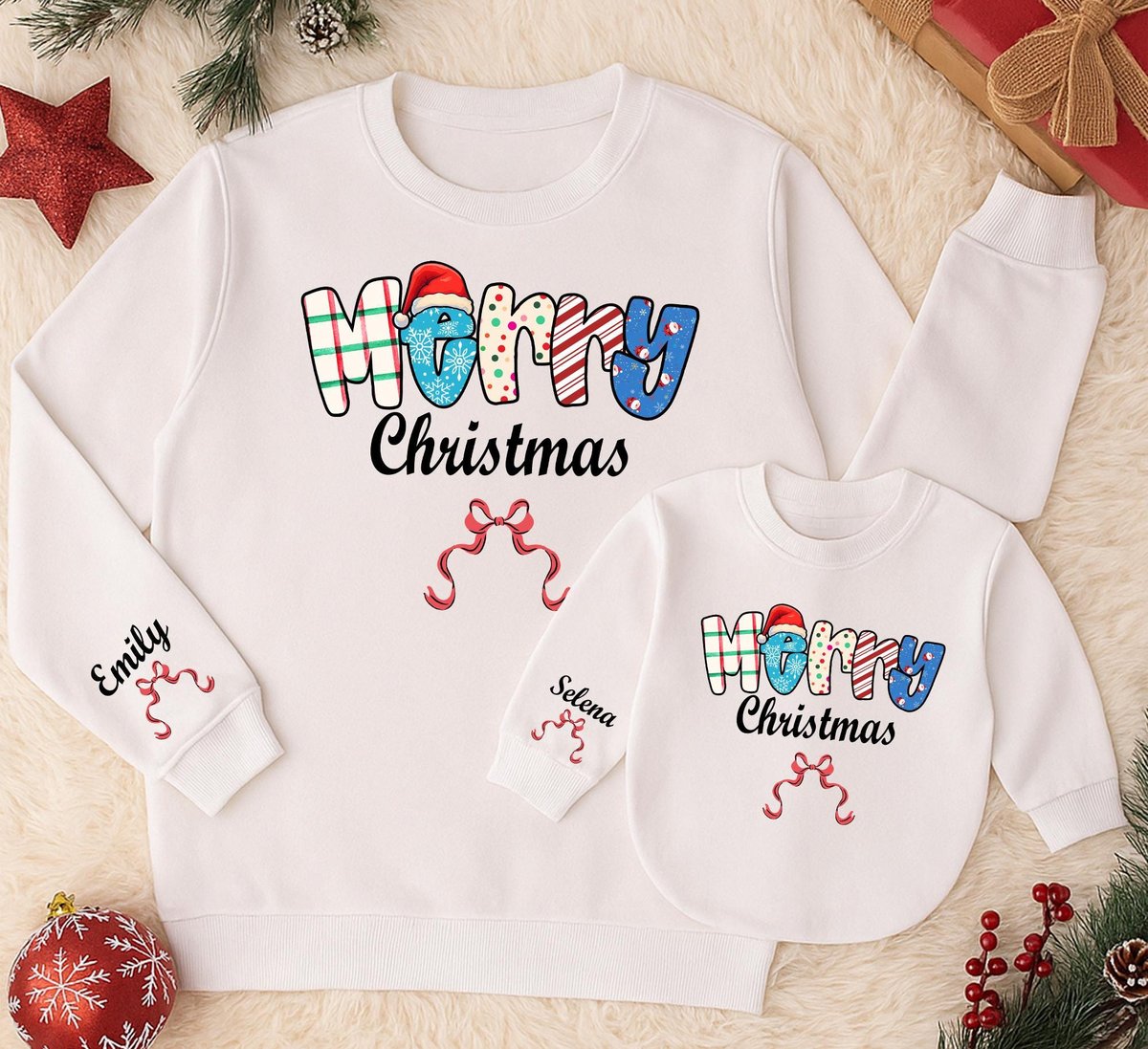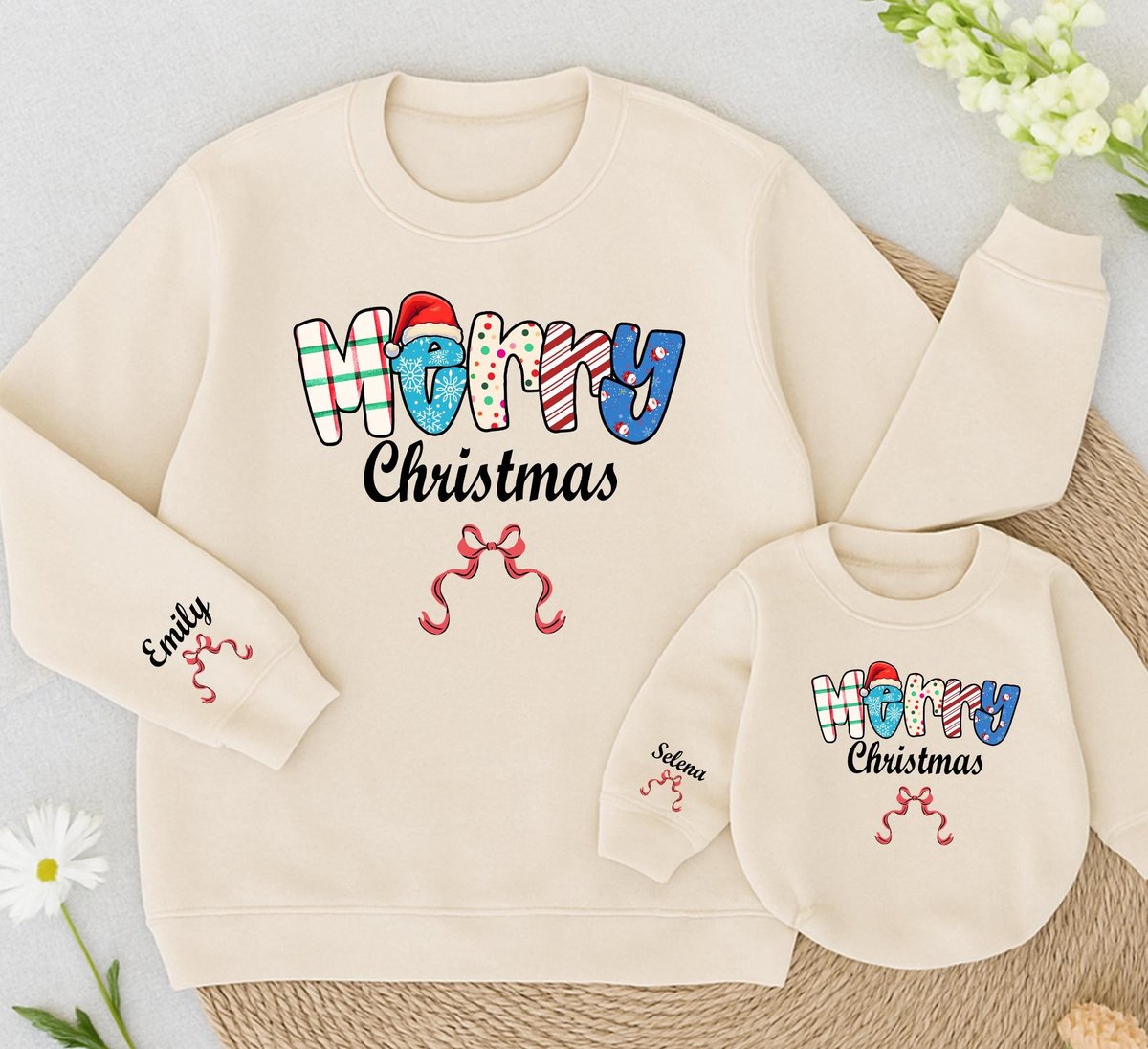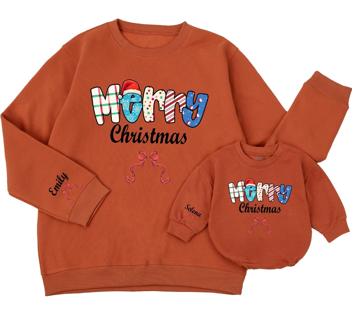 Custom Merry Christmas Sweatshirts Holiday Cute Bow woman Sweater Trendy Xmas Toddler Sweatshirt Bab 436