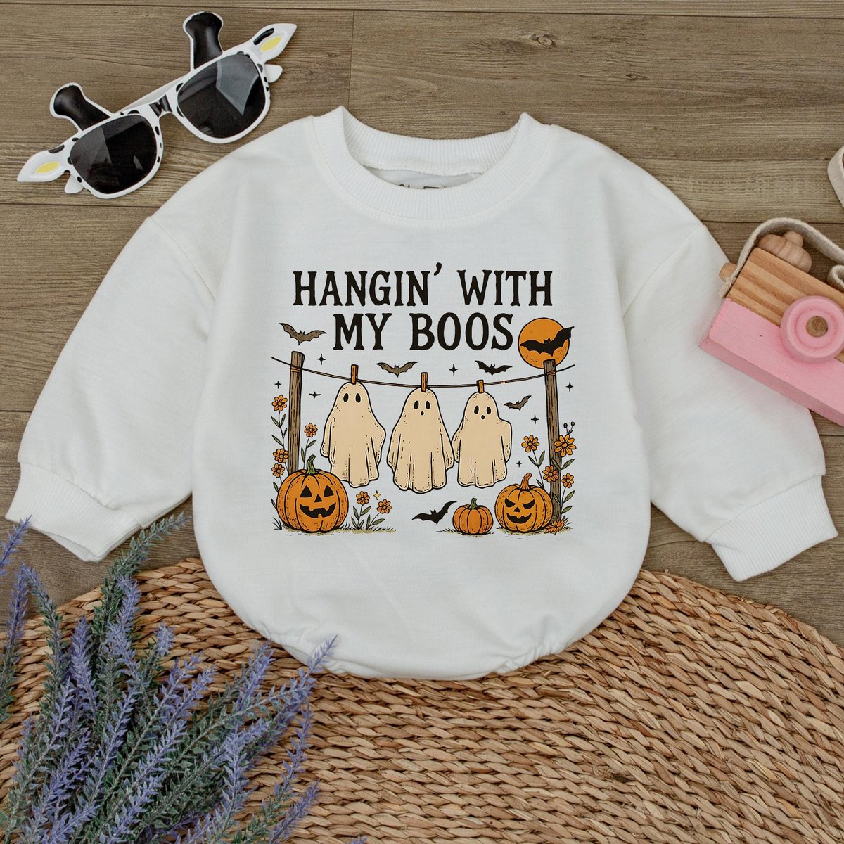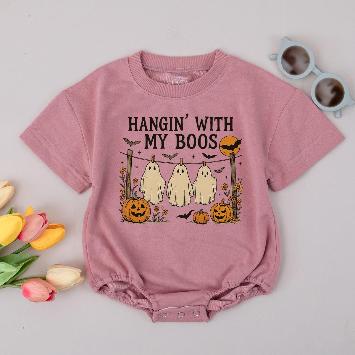 Funny Hanging Ghosts Halloween Baby Romper Hangin With My Boos Design Cute Pumpkin Bat Halloween the 434