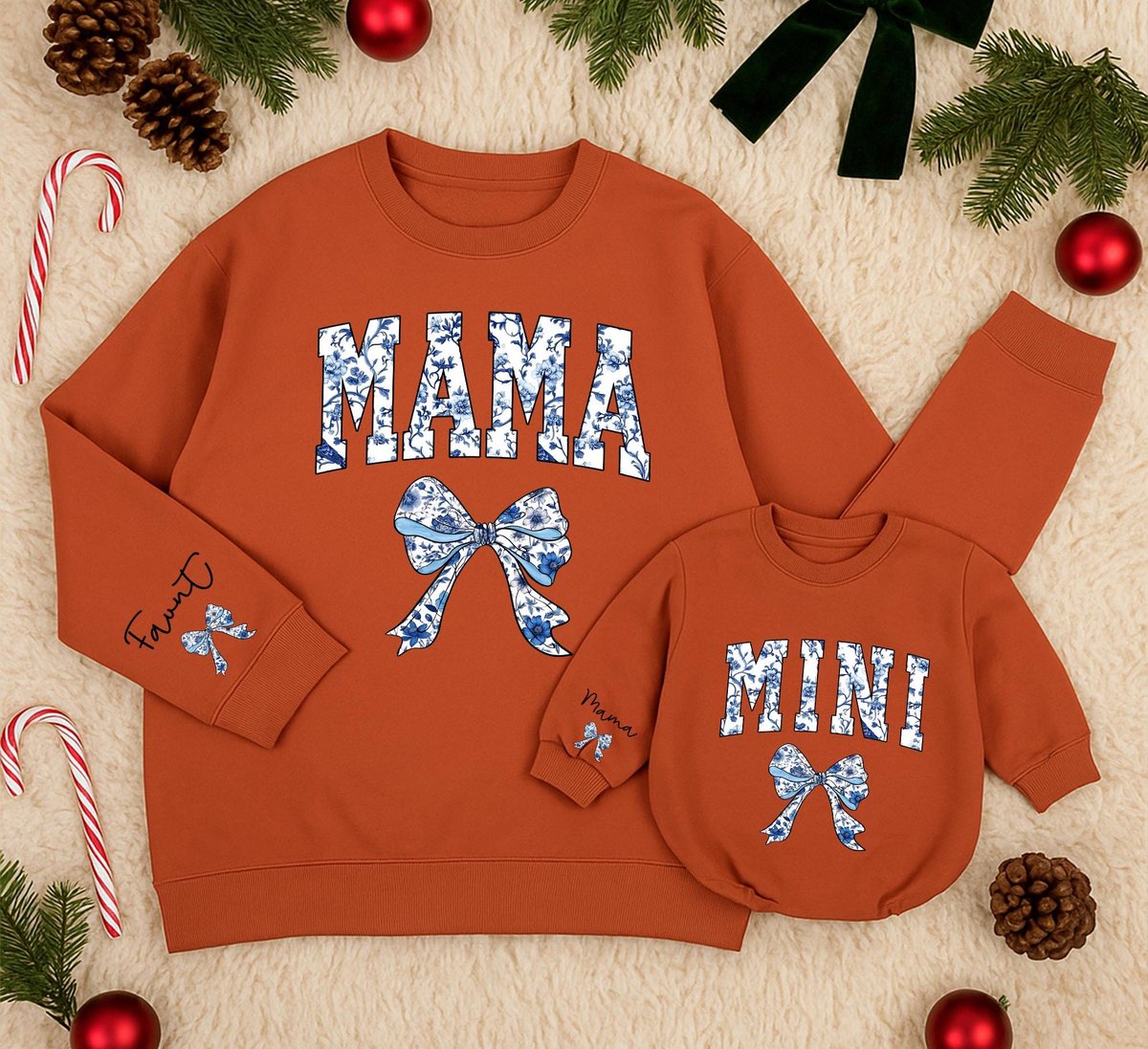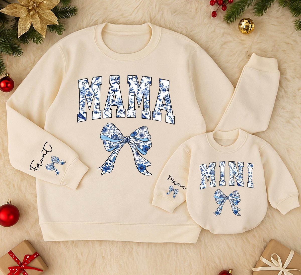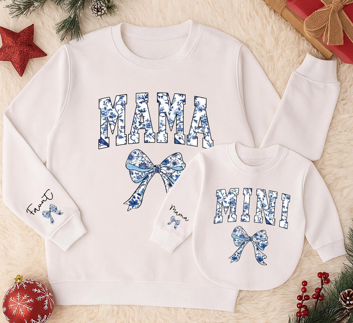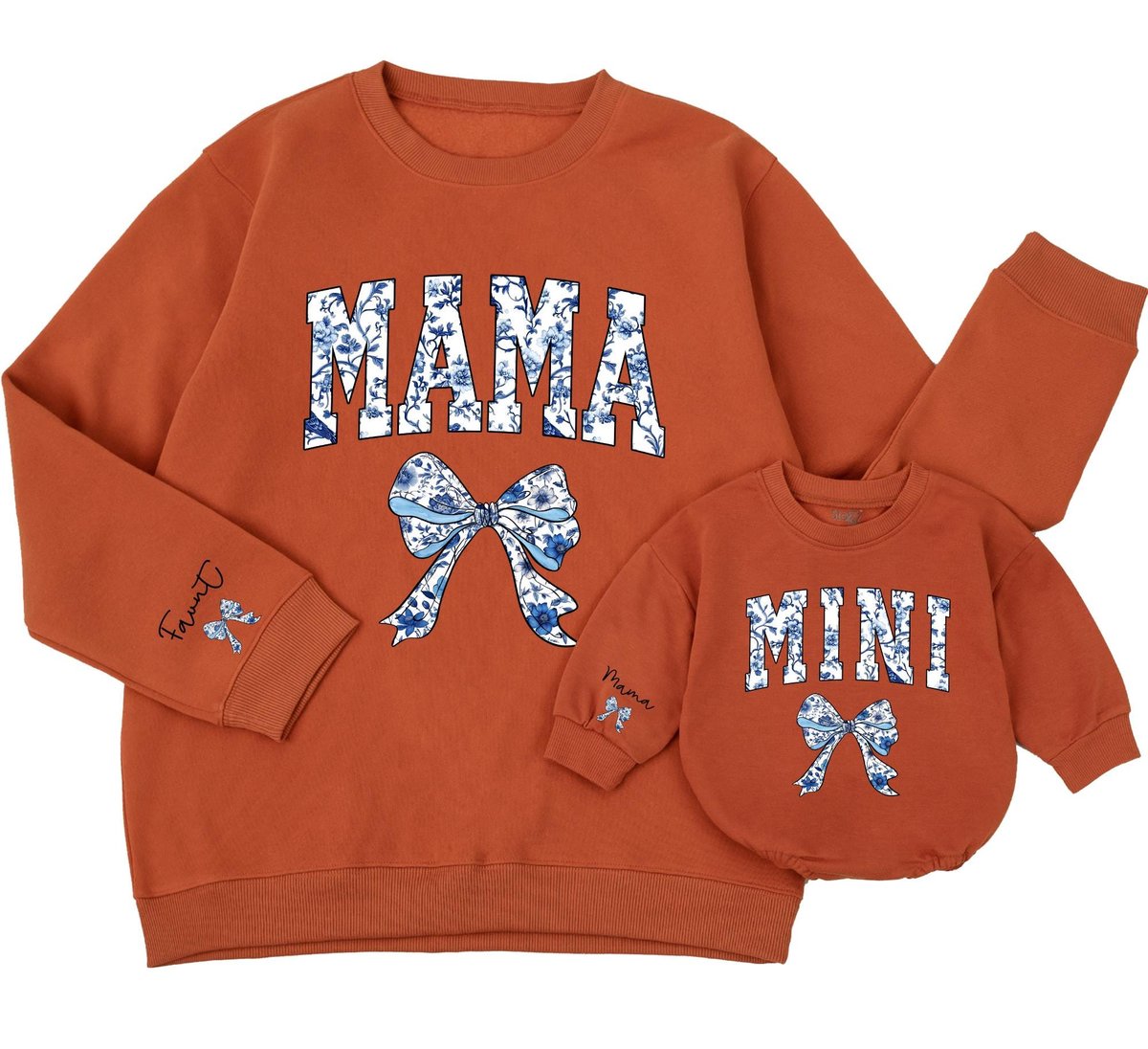 Mama And Mini Chinoiserie Sweatshirts Custom name Mom Baby Matching Outfit Blue Ribbon Baby Romper R 435